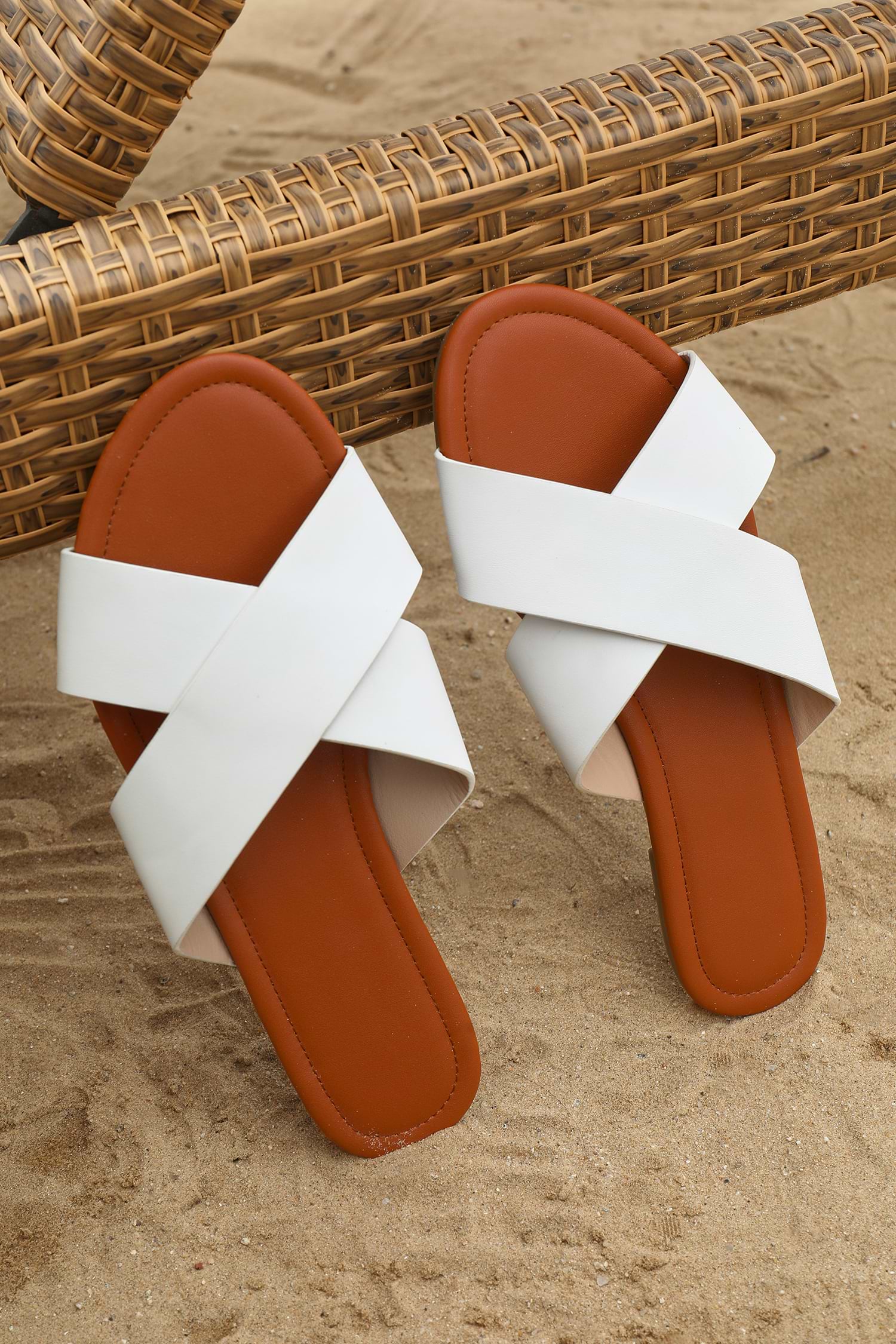 The Cool Coast White Sandal is your go-to for effortless summer style! Featuring wide crossover straps, a slim silhouette, and a laid-back vibe, it's designed for comfort and casual flair.
