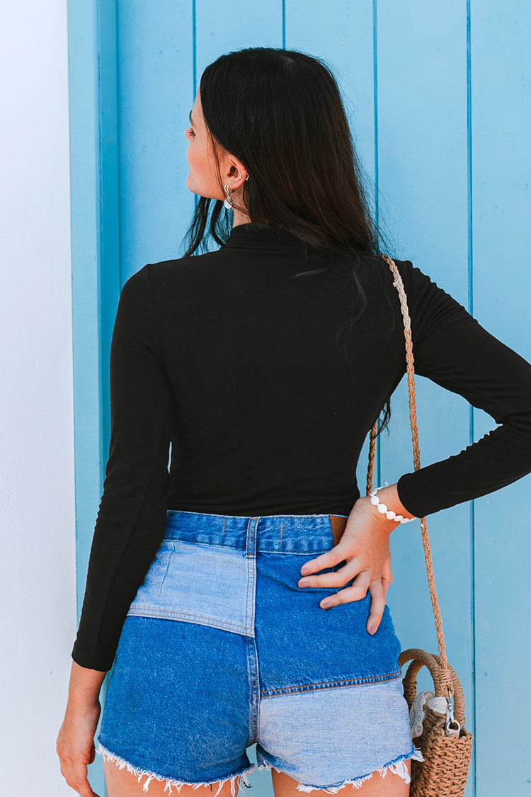Long Sleeve Black High Neck Cut Out Bodysuit