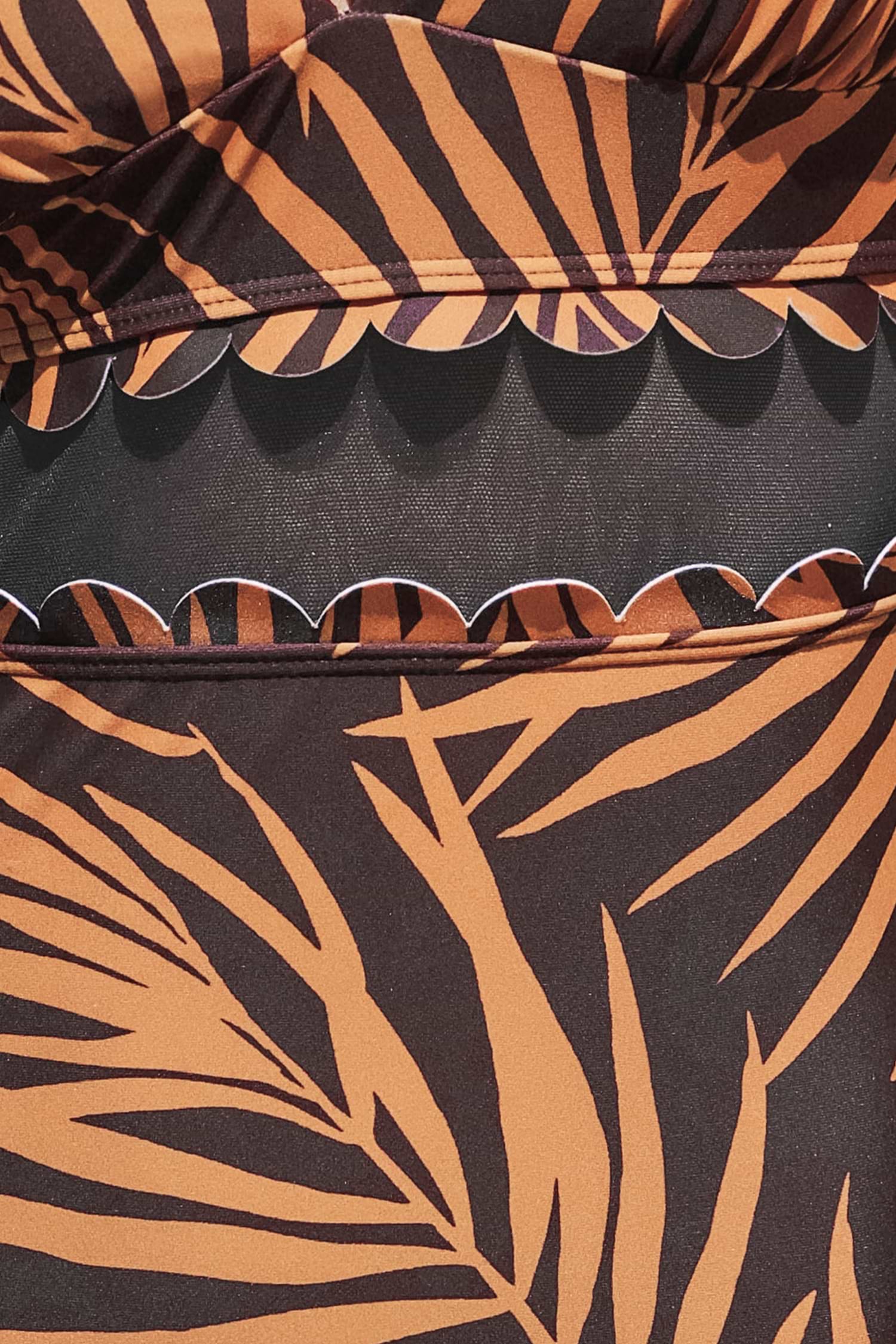 HomeAutumn Leaves Scalloped Mesh One Piece Swimsuit