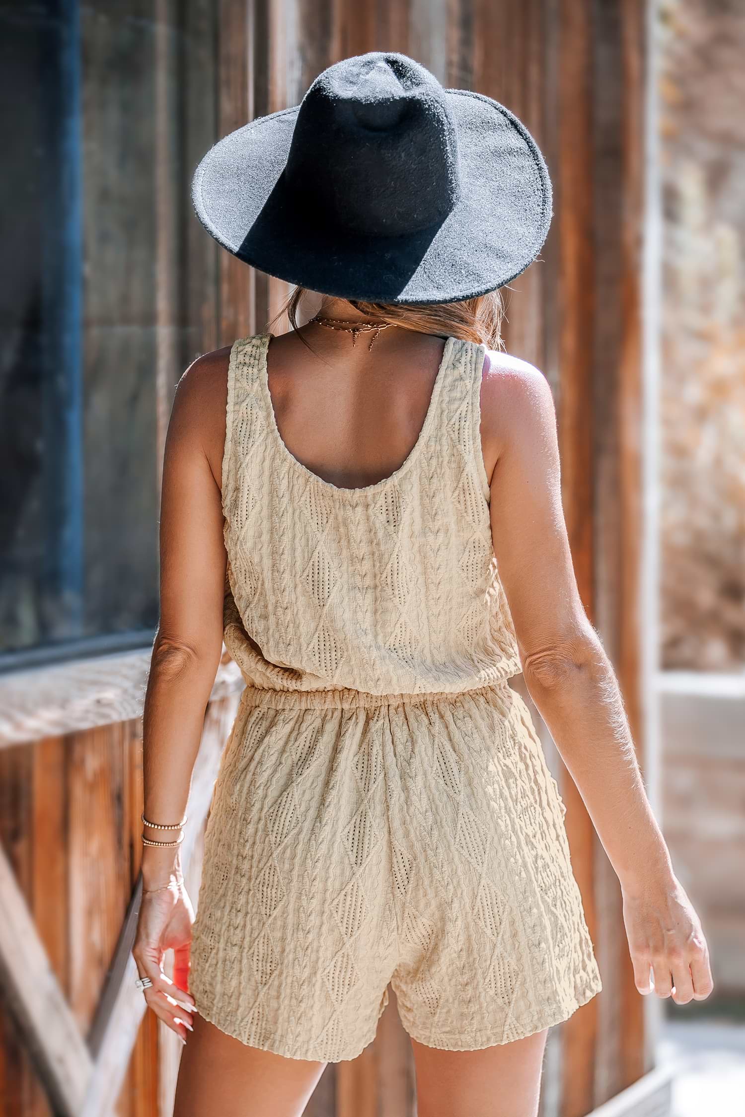 HomeBeige U-Neck Sleeveless Straight Leg Romper