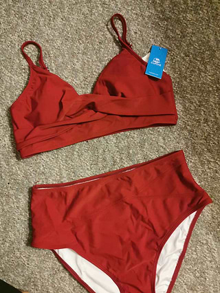 Black & Eucalyptus Wrapped Bikini Top & High-Waisted Bottoms Set