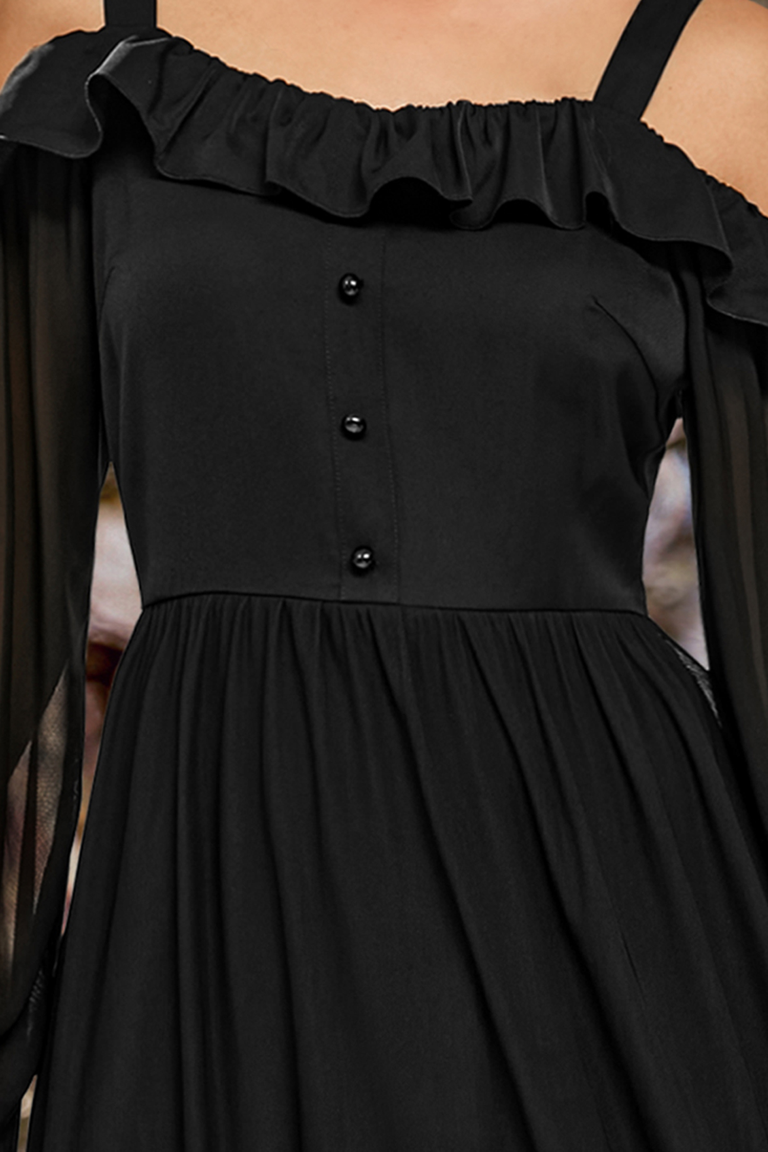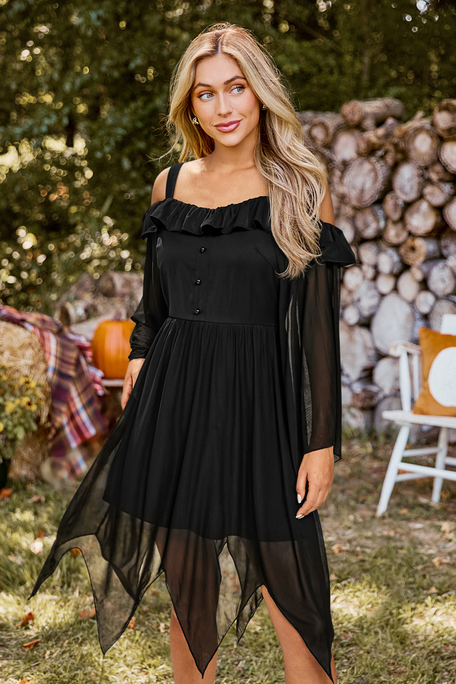 HomeBlack Mesh Asymmetrical Hem Midi Dress