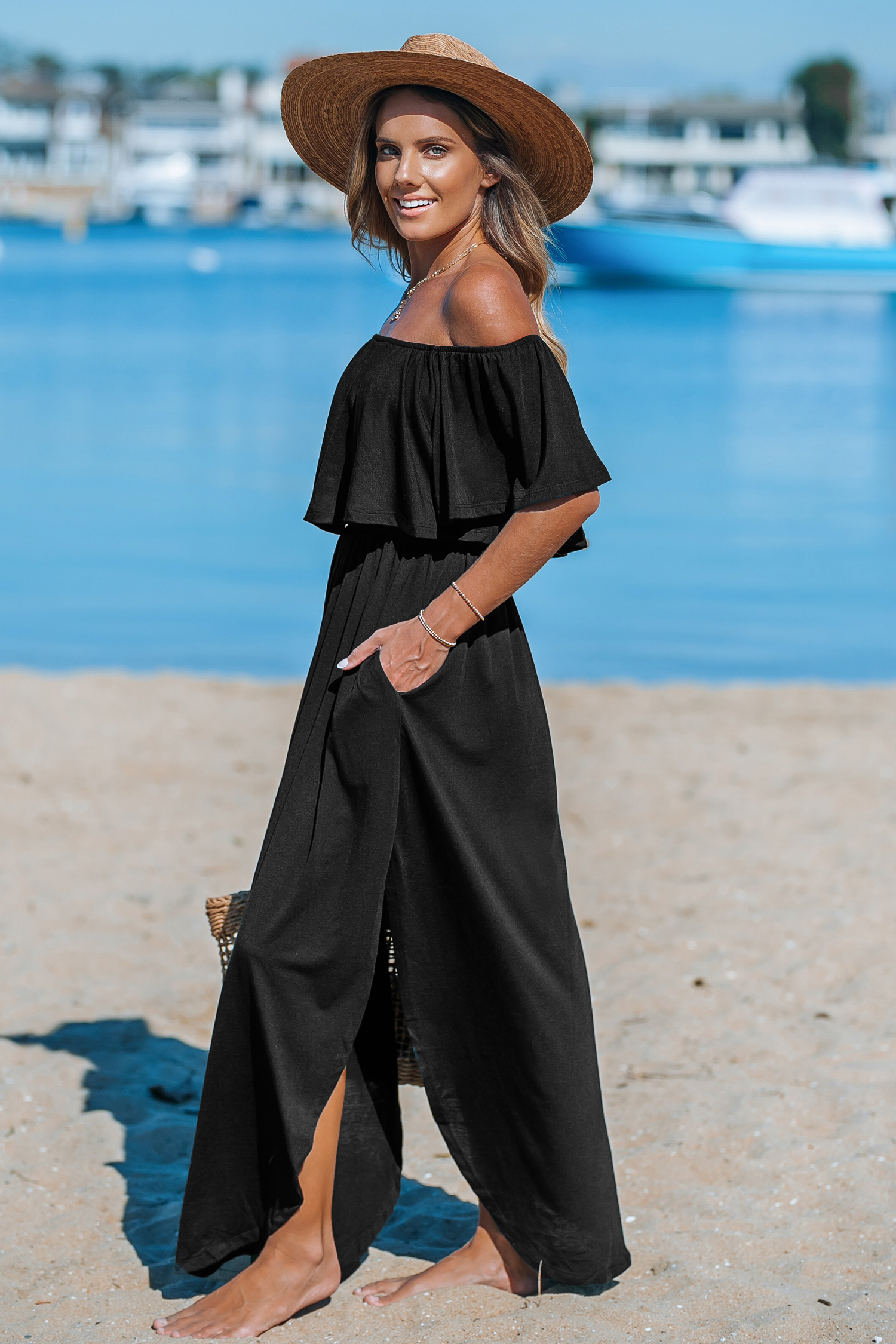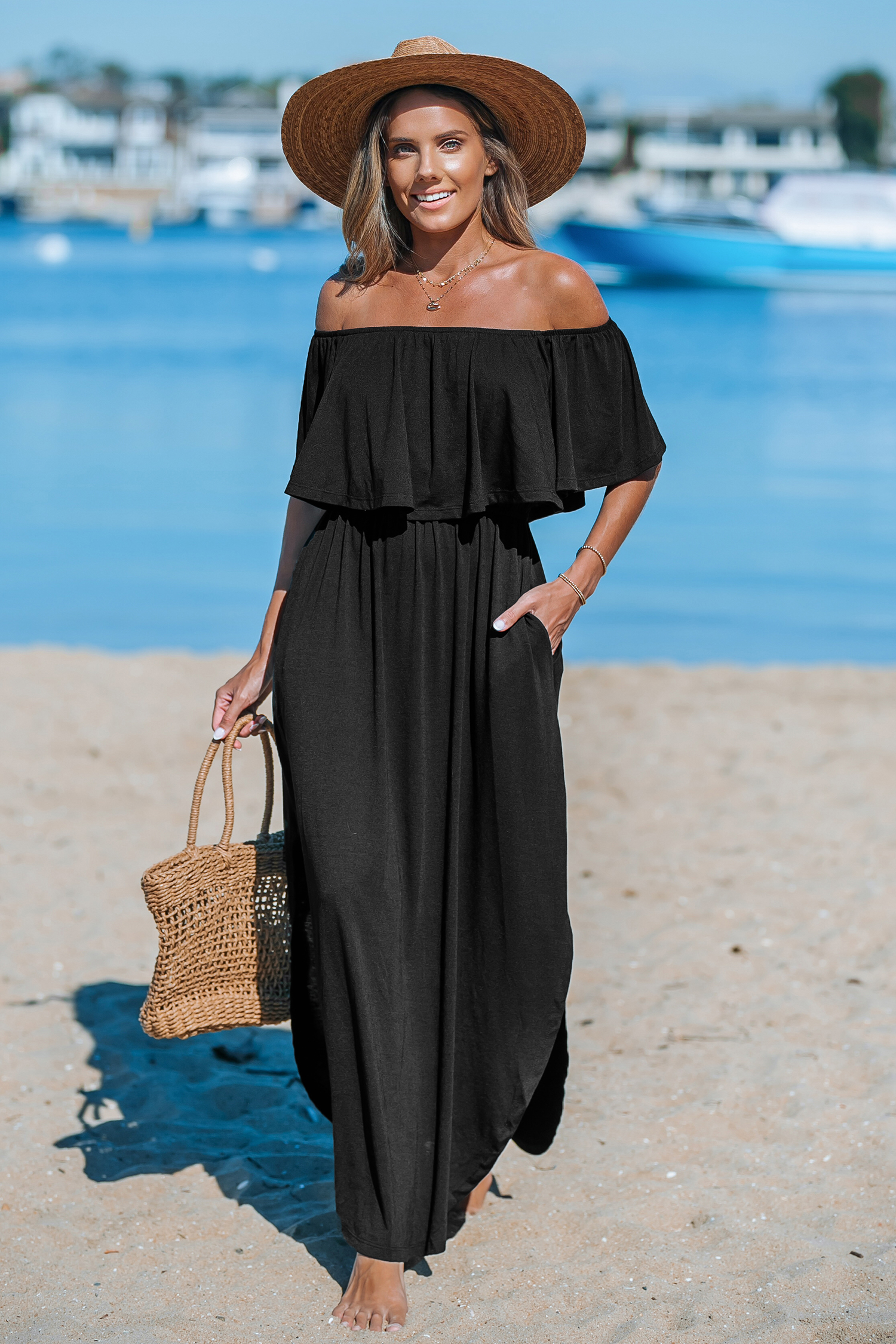 Black Off-Shoulder Flounce Bodice Maxi Dress