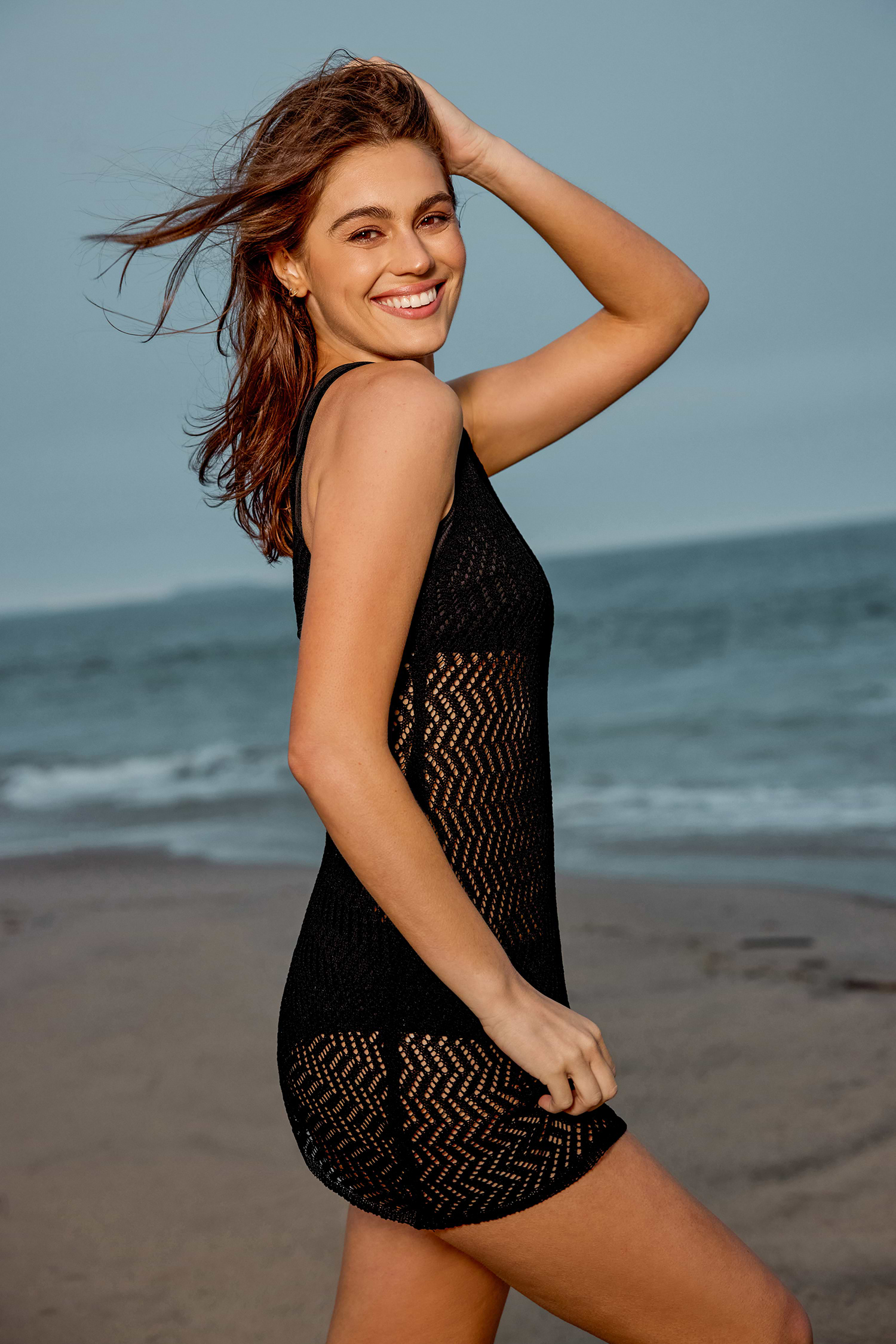 Black Sleeveless Scoop Neck Knit Mini Cover-Up