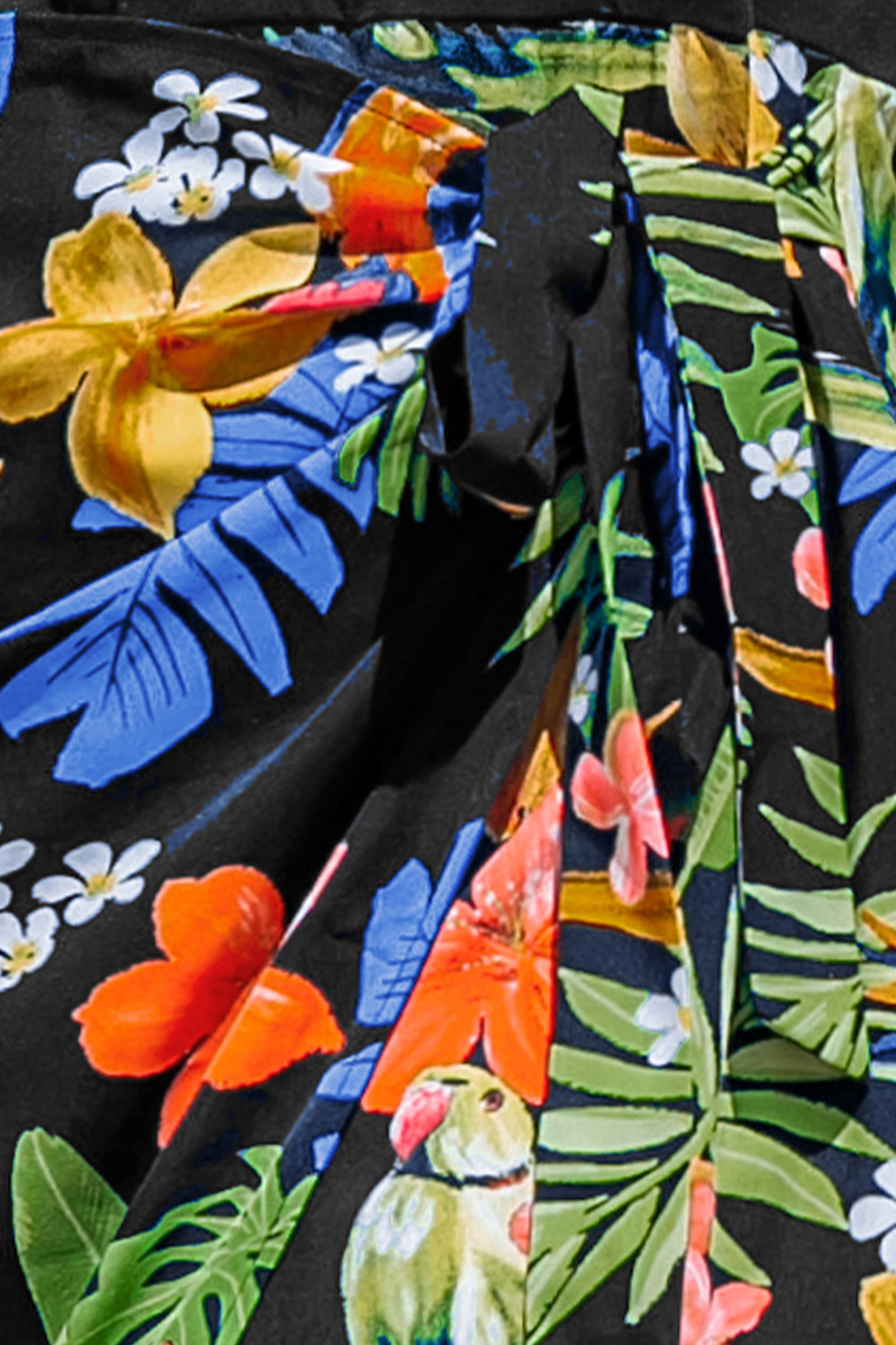 HomeBlack Tank Tropical Wrap Skirt Midi Dress