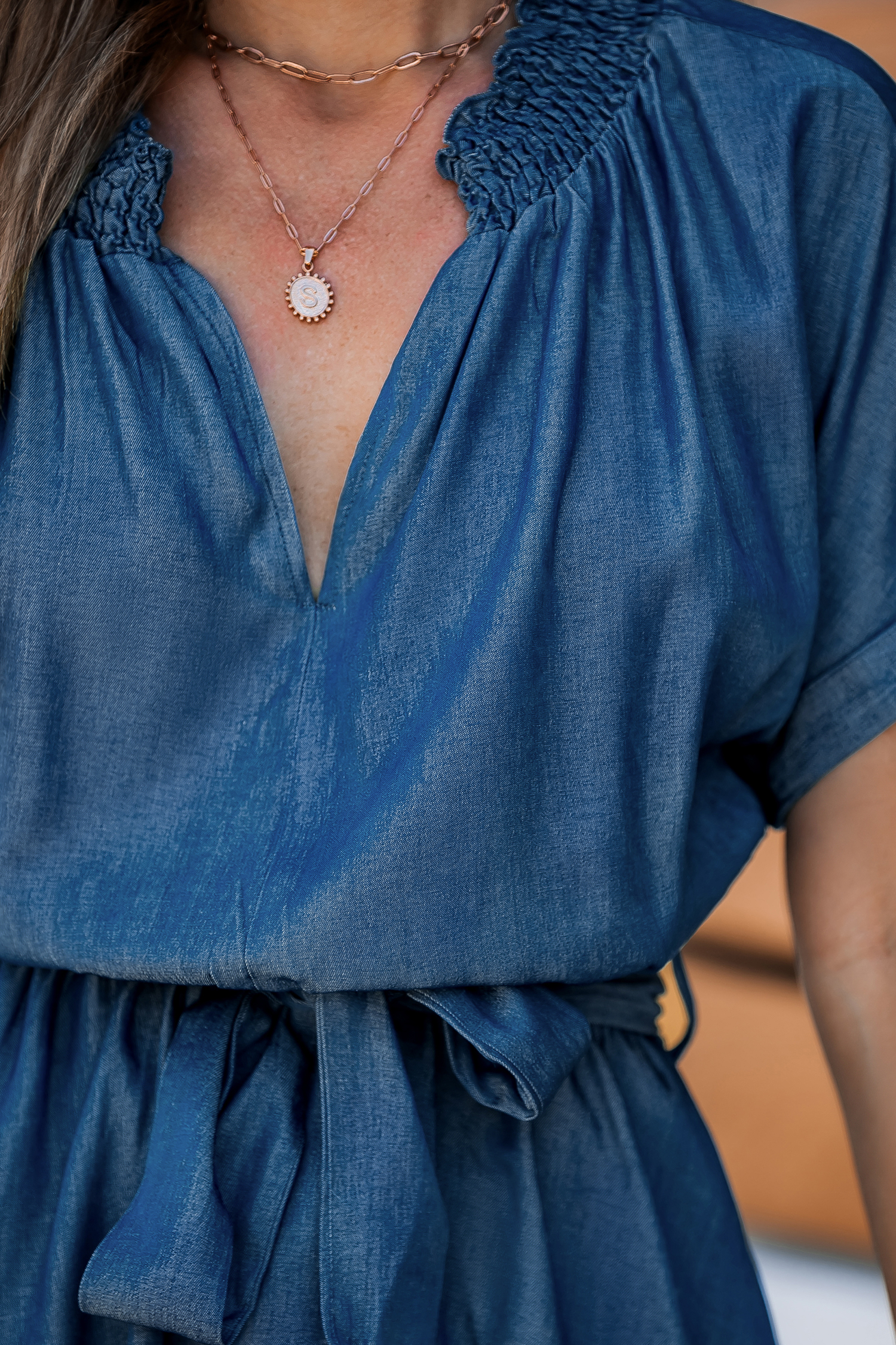 HomeBlue Short Sleeve Tie Waist Mini Dress