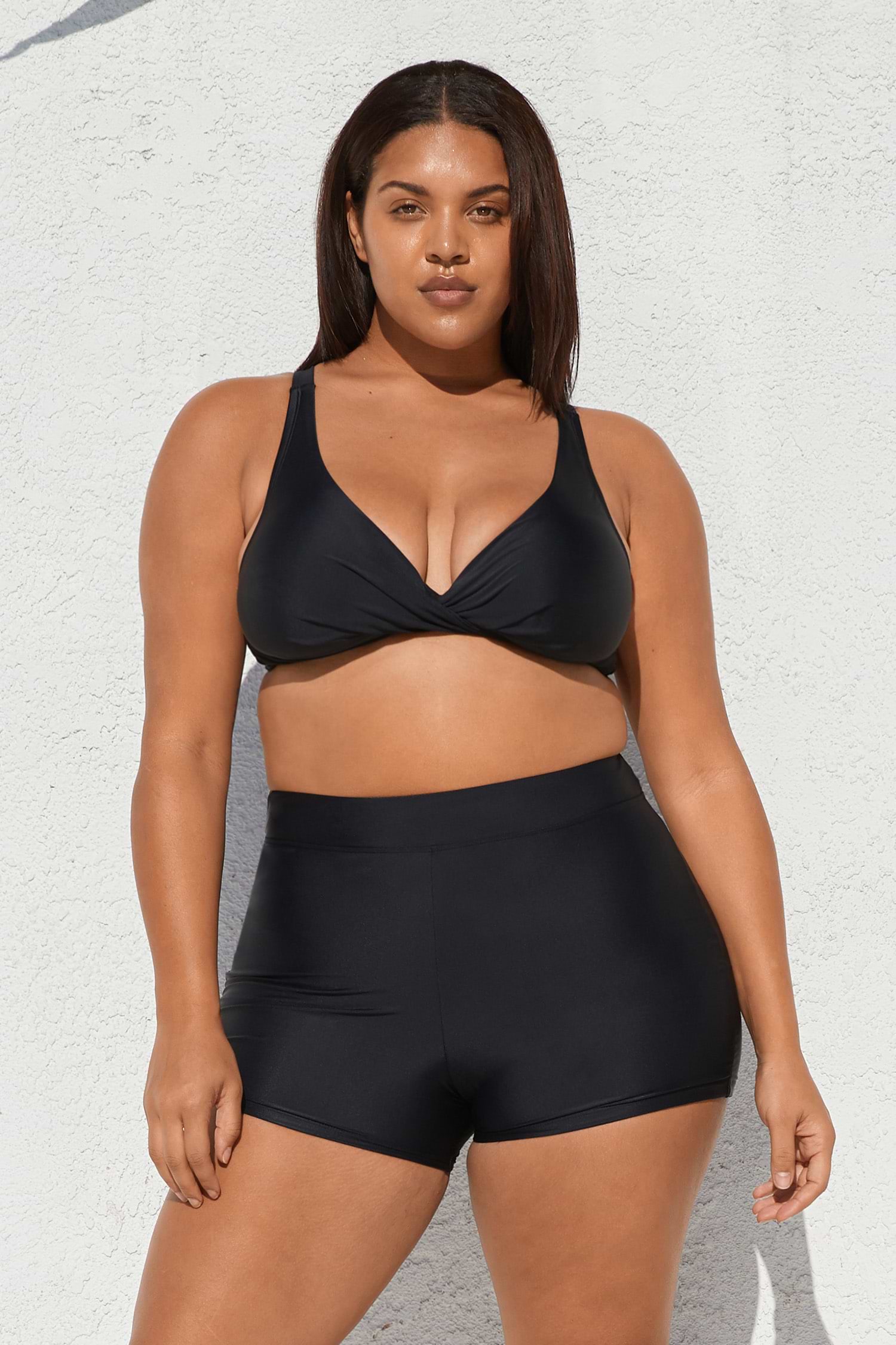 HomeBoho Rhapsody Wrap Bralette & Bike Shorts Plus Size Swim Set