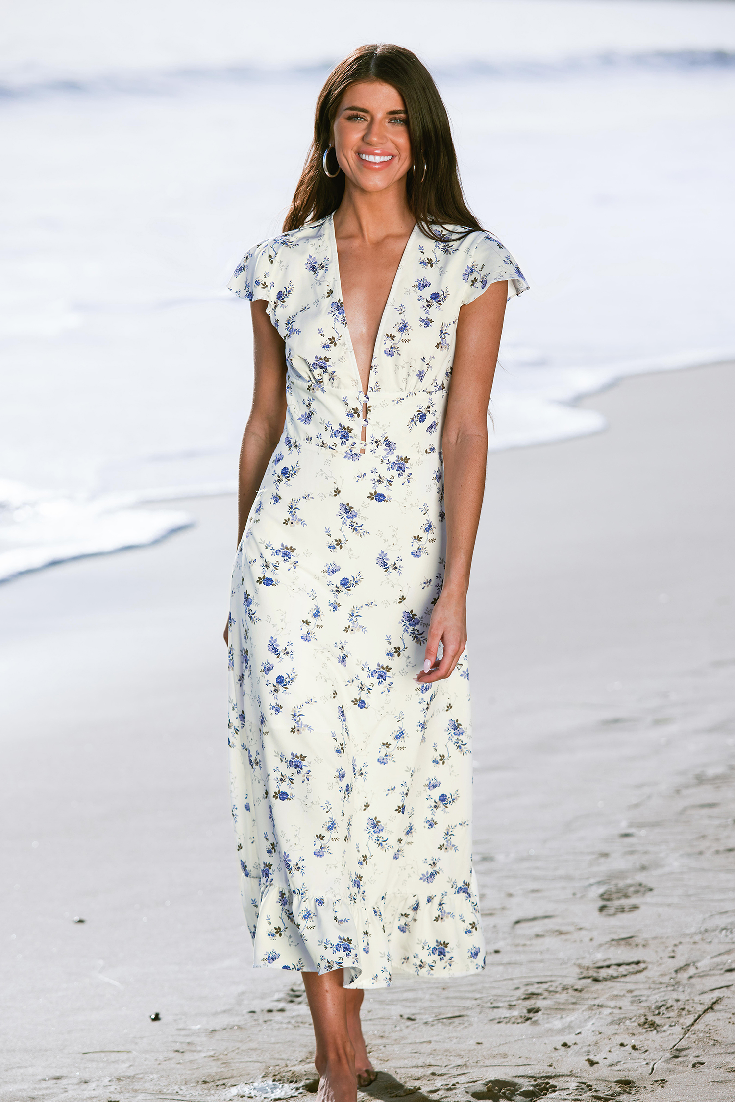 X Madison Beach Wedding Bouquet V-Neck Ruffled Dress