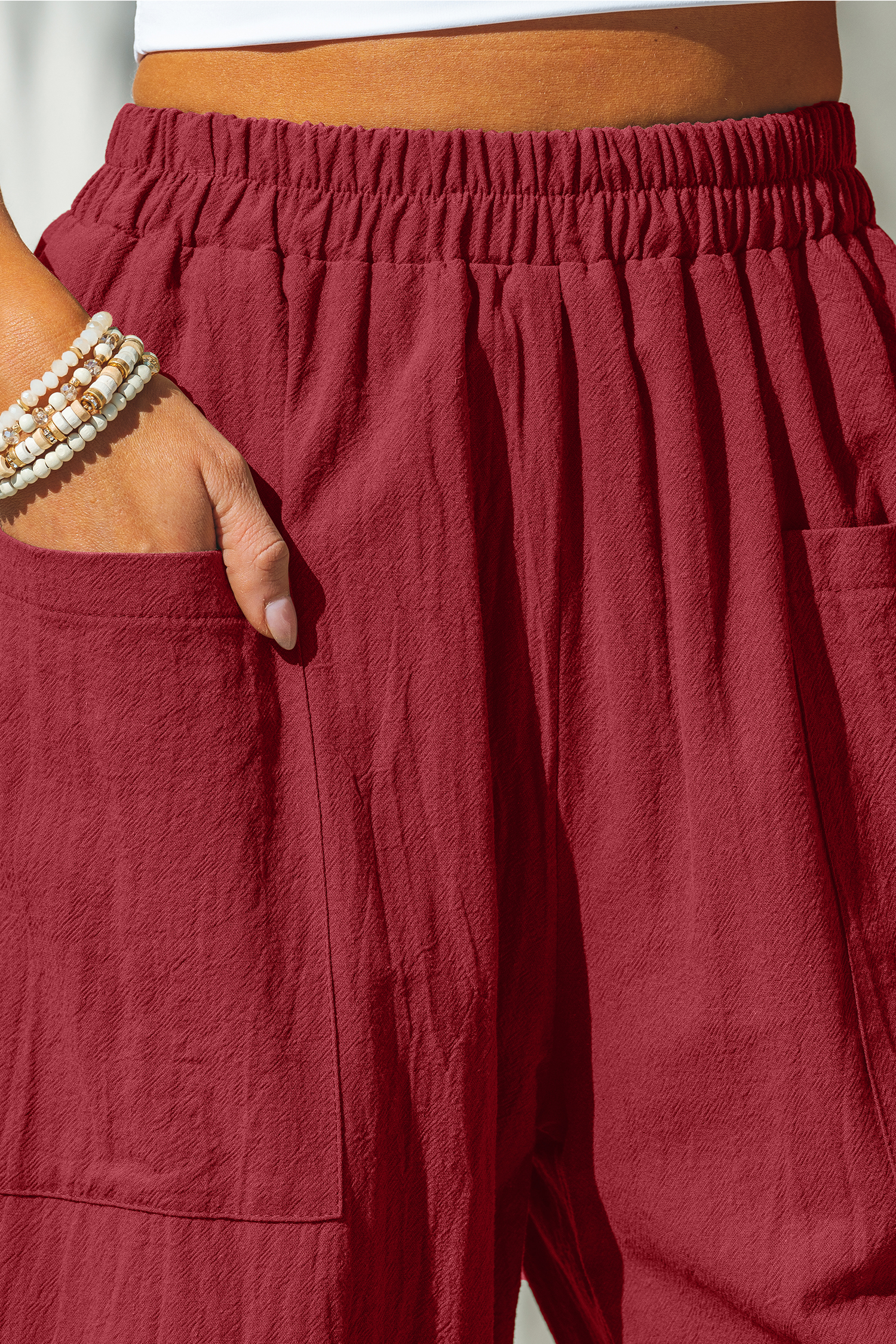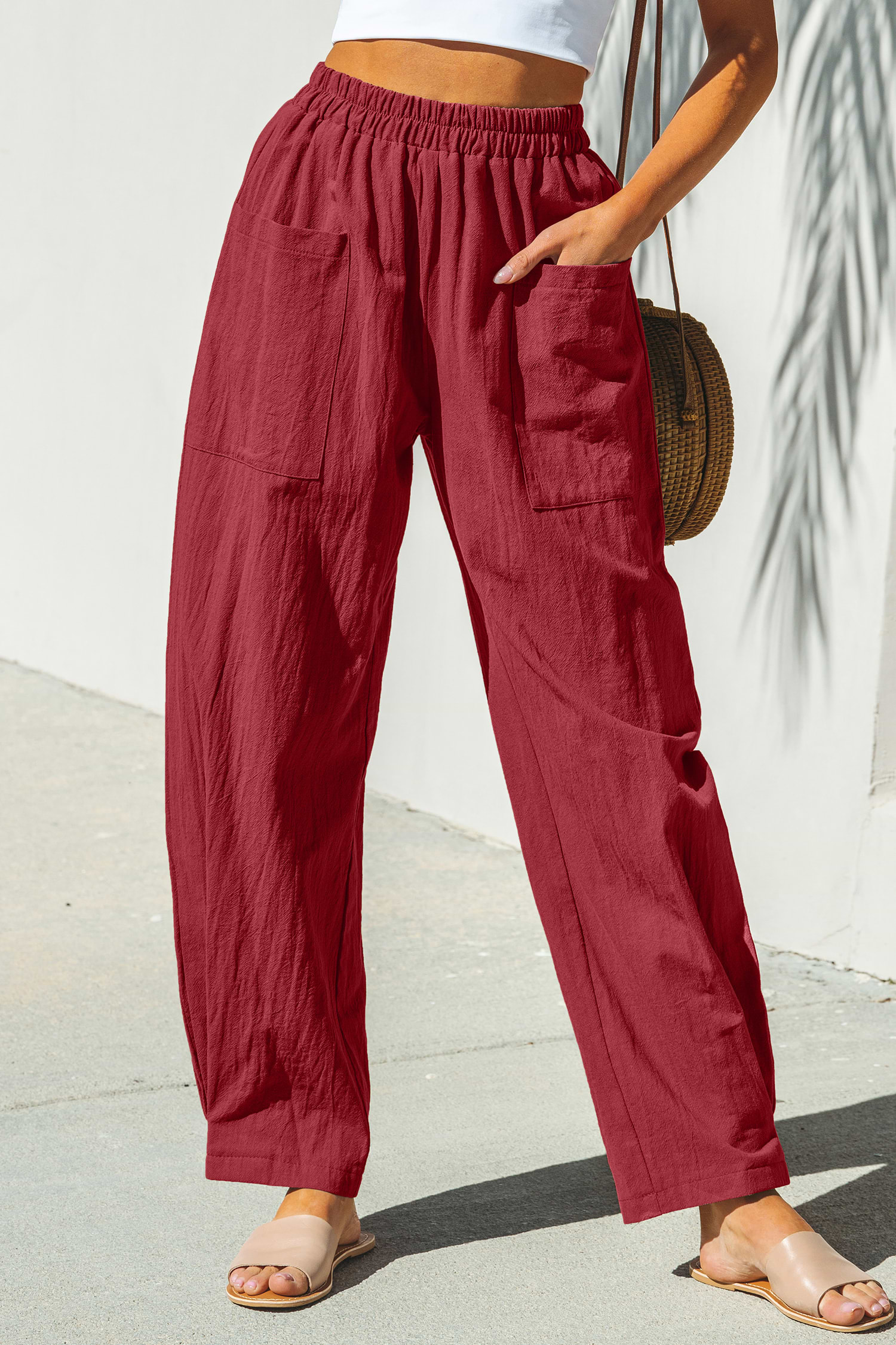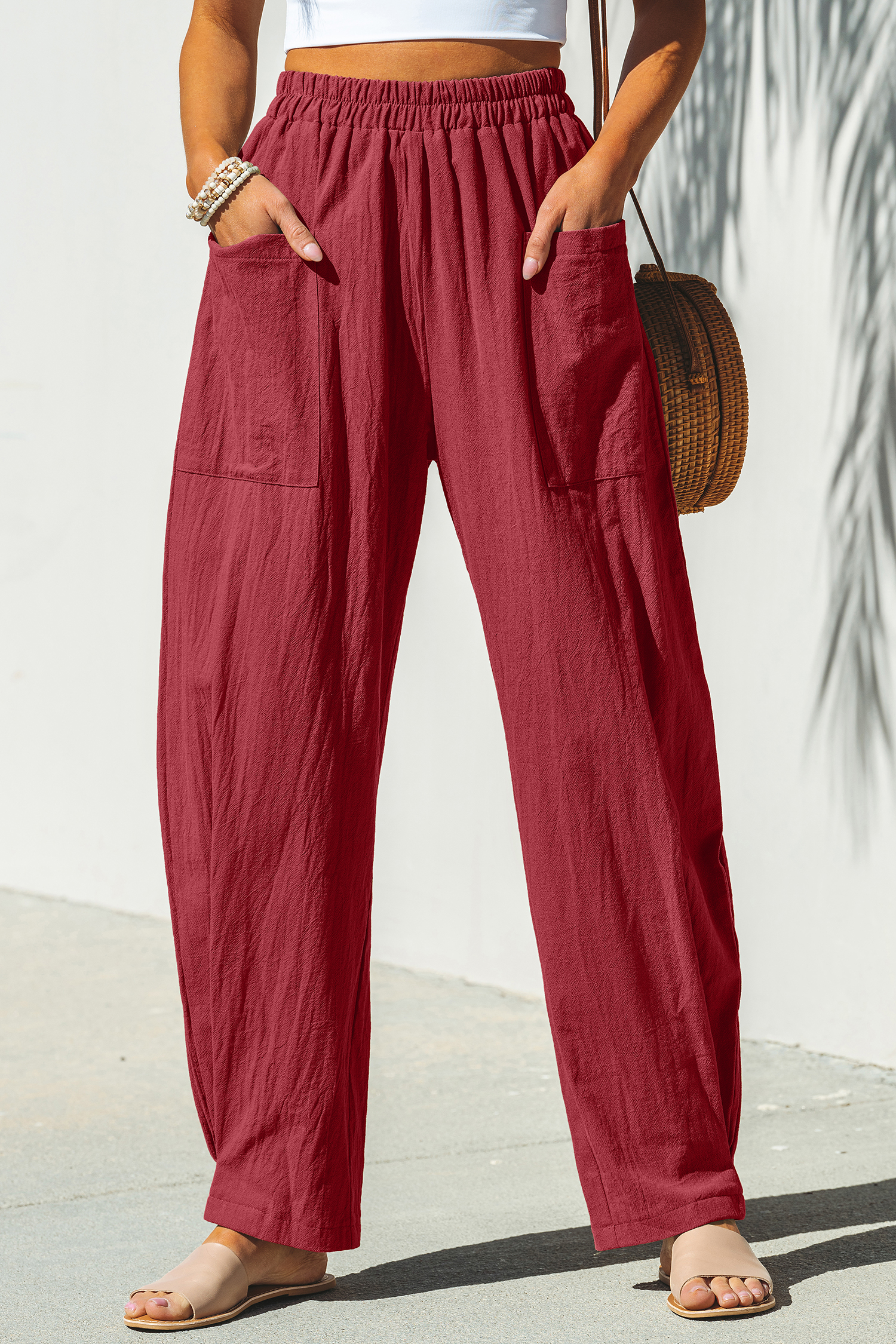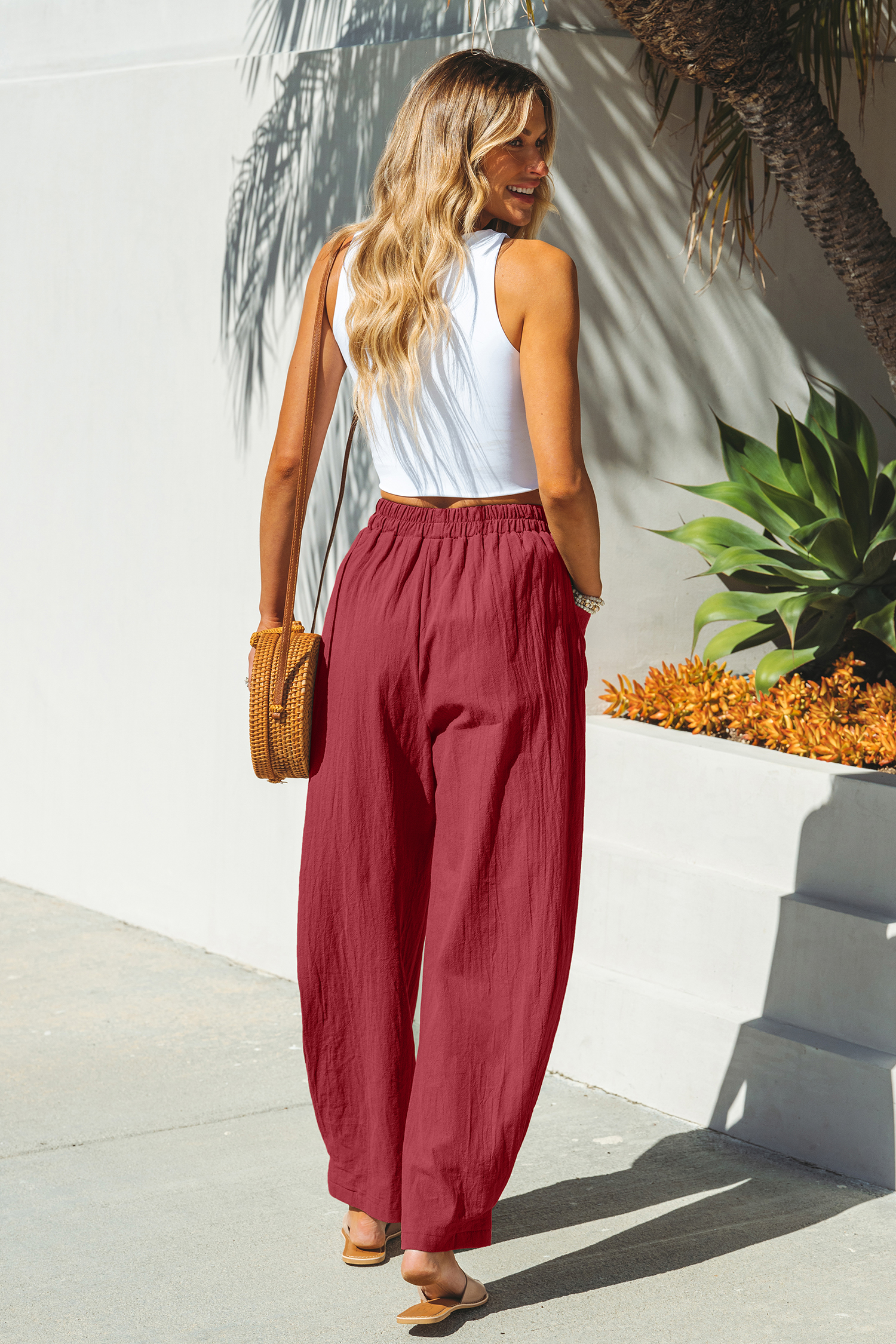 Burgundy Cotton Elastic Waist Tapered Leg Pants