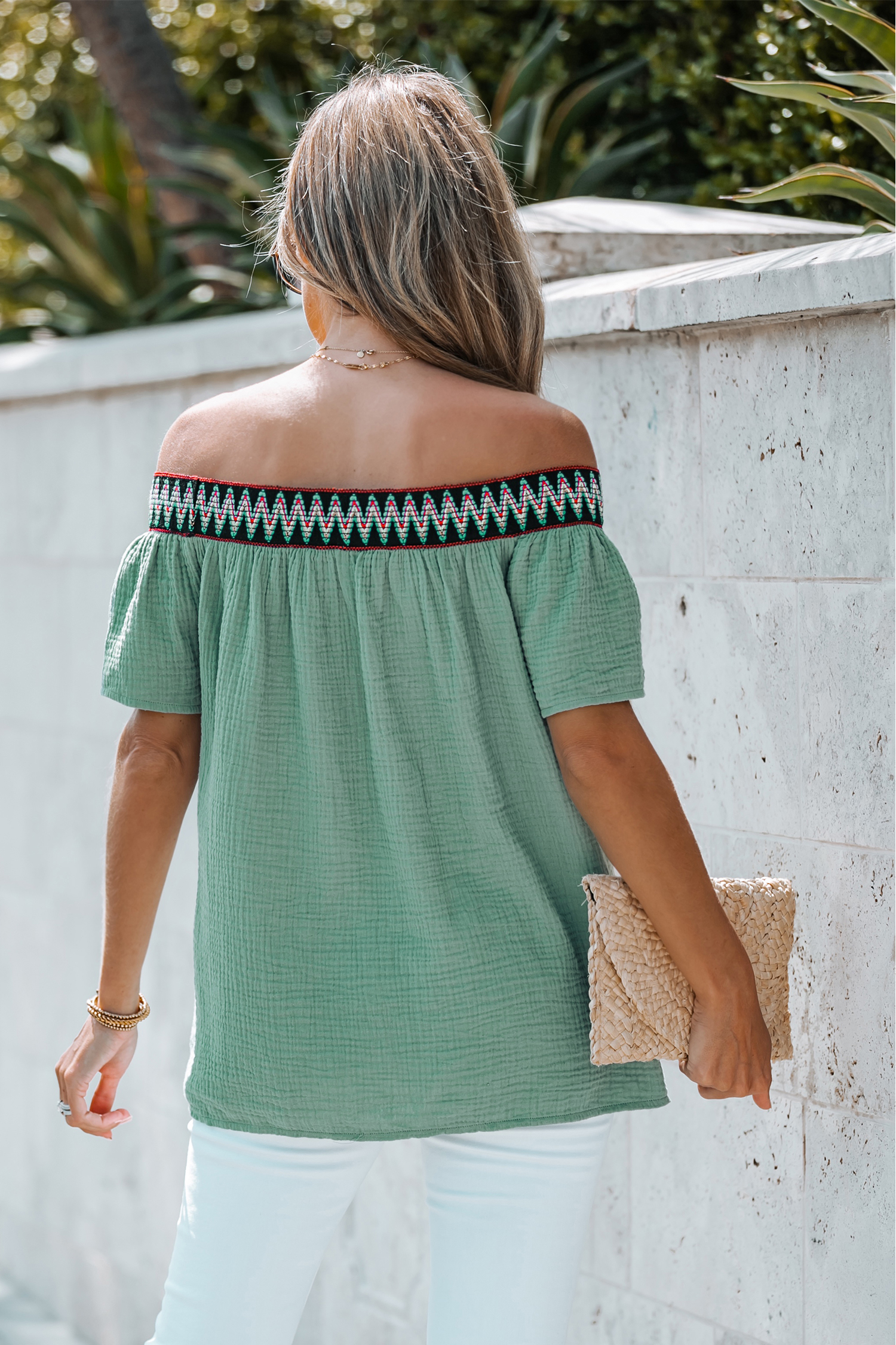 HomeChevron Stitching Off-the-Shoulder Green Top