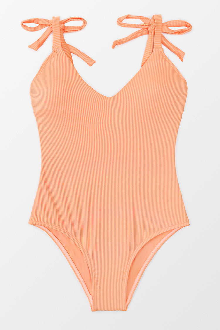 HomeClaudia Shoulder Tie Criss Cross One Piece Swimsuit