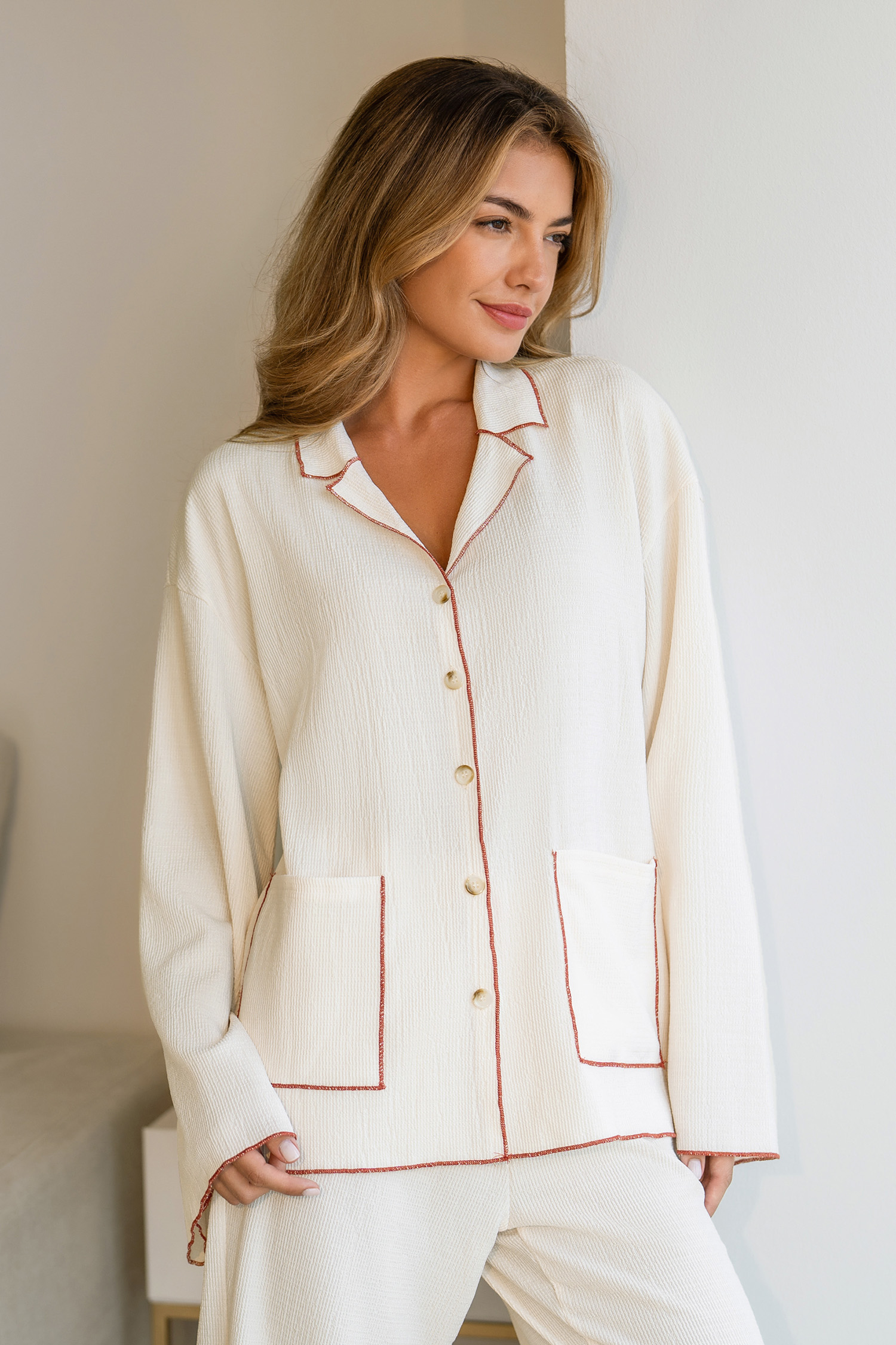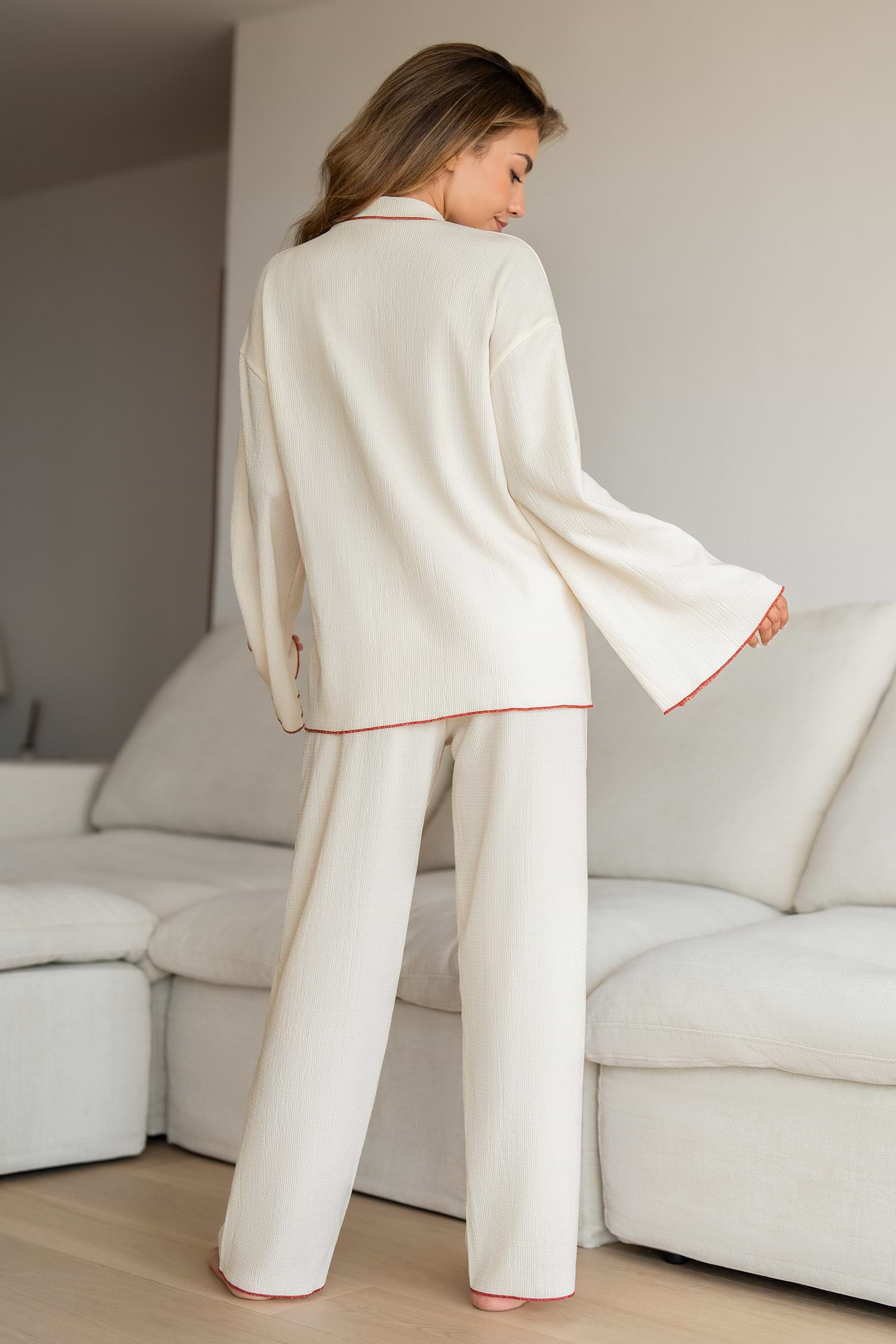 HomeCollared Long Sleeve Top & Pants Pajama Set