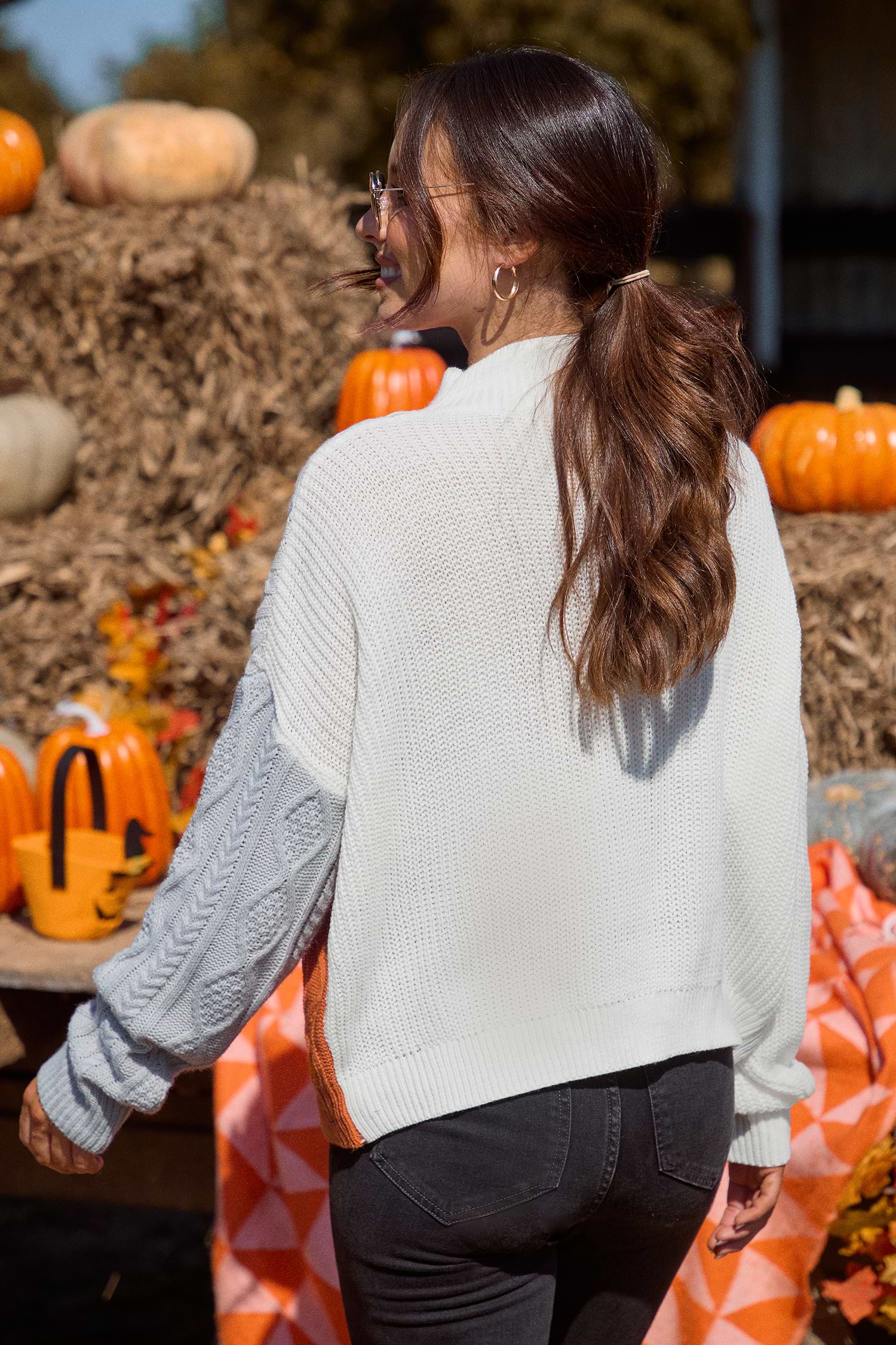 Colorblock Cable Knit Long Sleeve Turtleneck Sweater