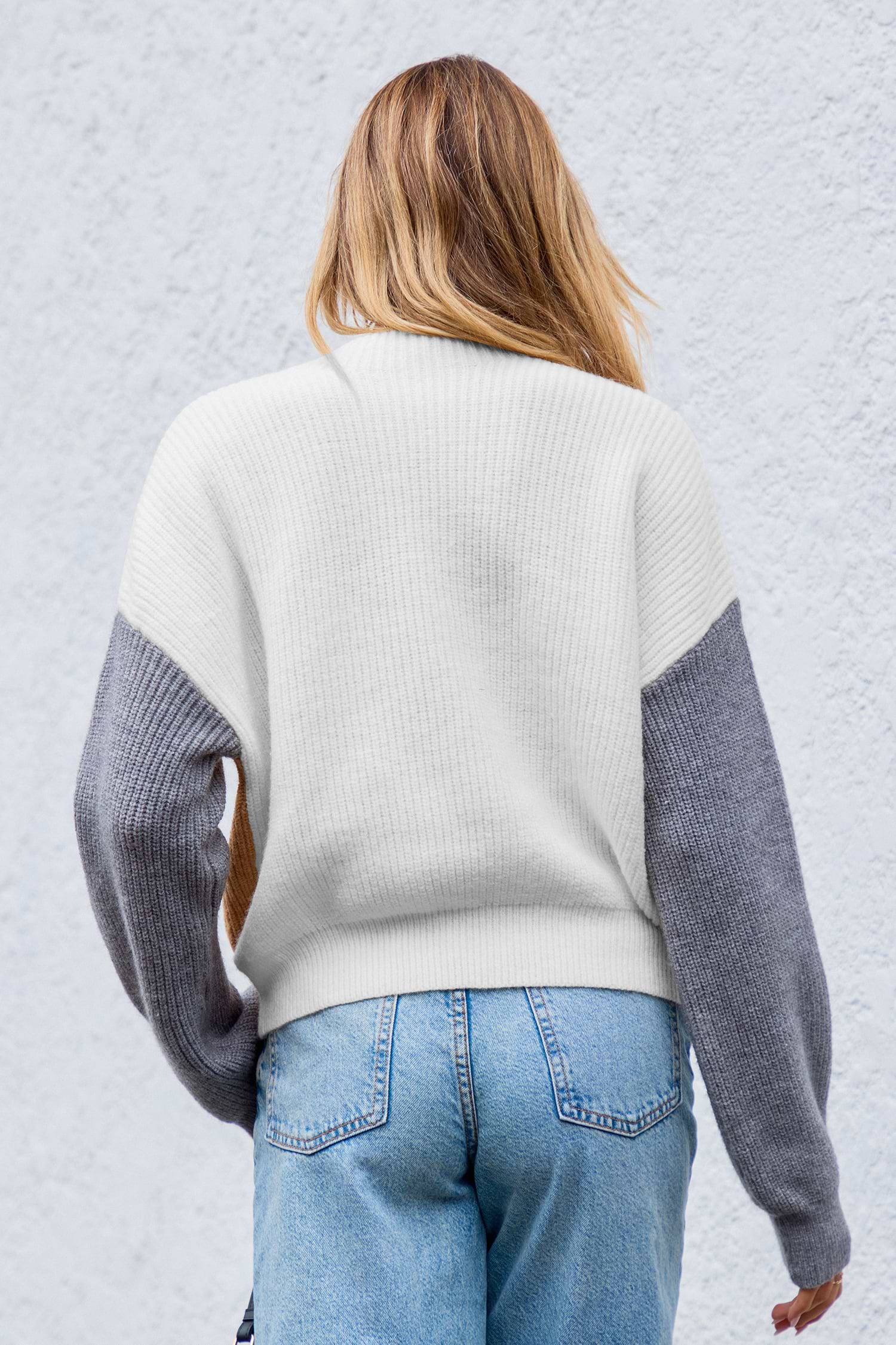 Brighten up your look with this cColorblock High Neck Knit Top! The bold color contrasts and high neck design add a fun, modern touch to your outfit.