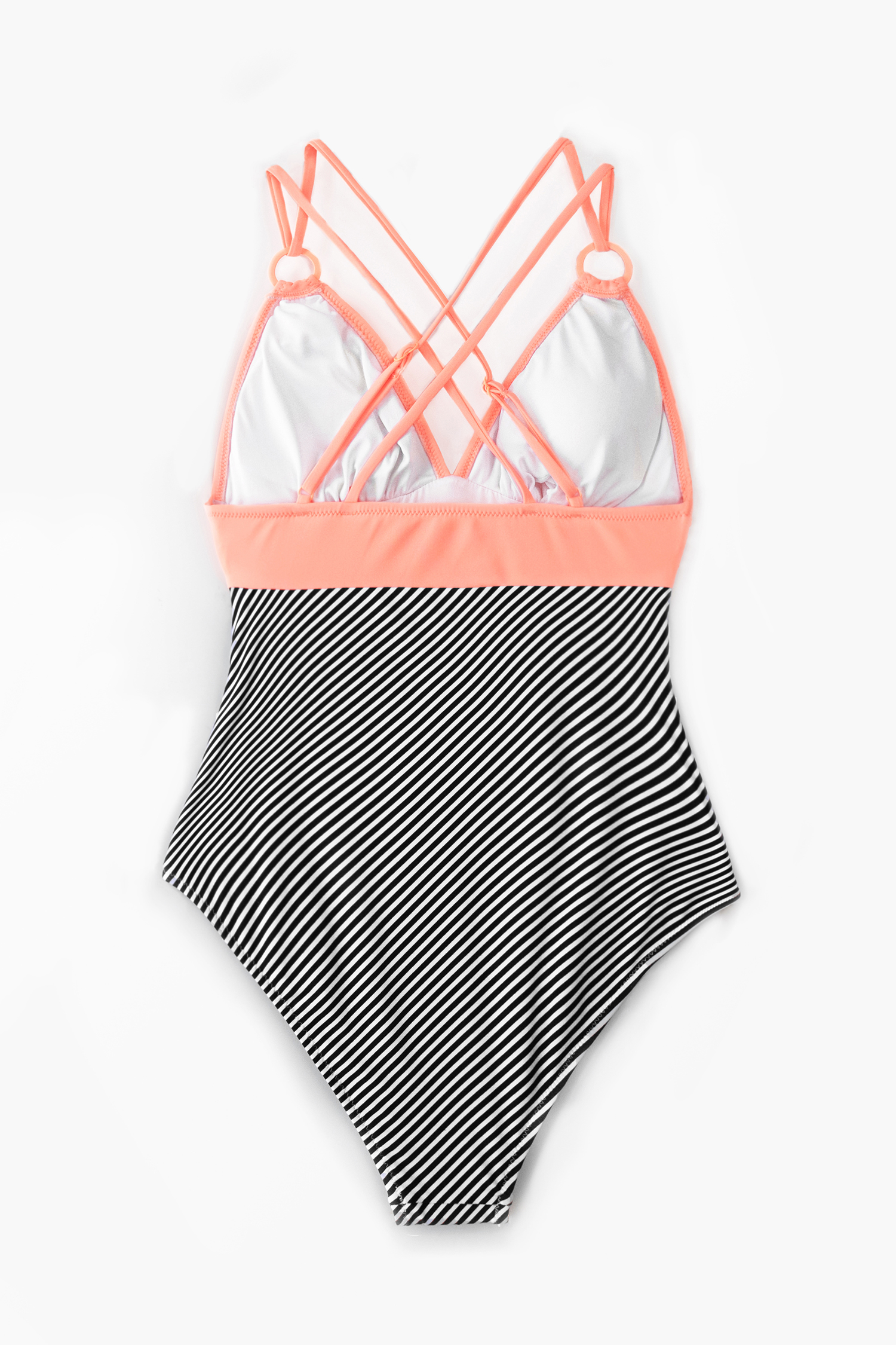 HomeColorblock Striped O-Ring Strappy One Piece Swimsuit