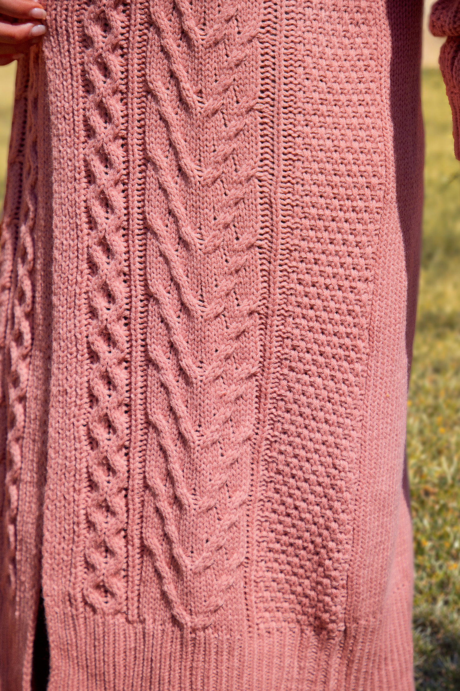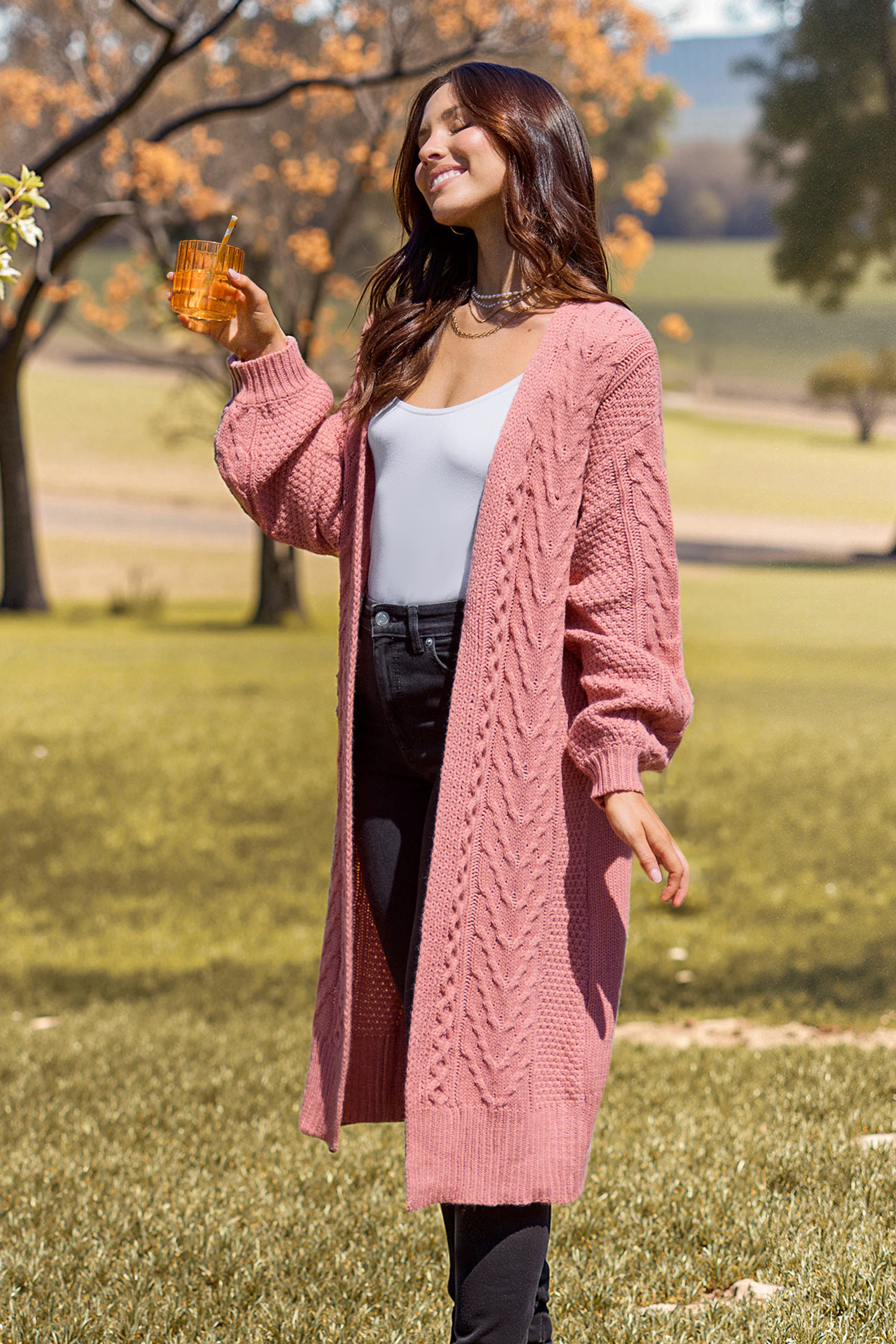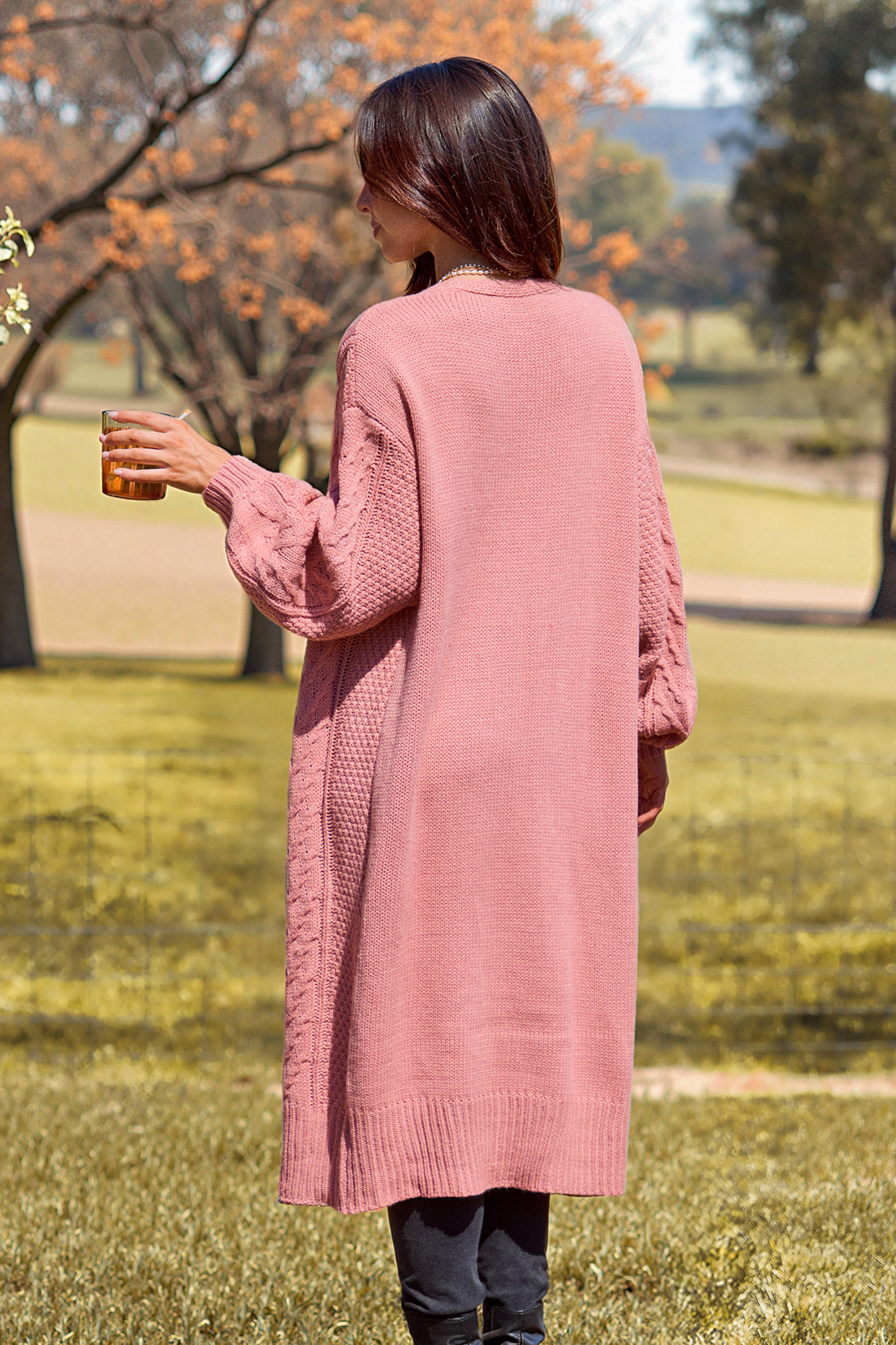 Halloween Coral Open Front Long Sleeve Cable Knit Longline Cardigan