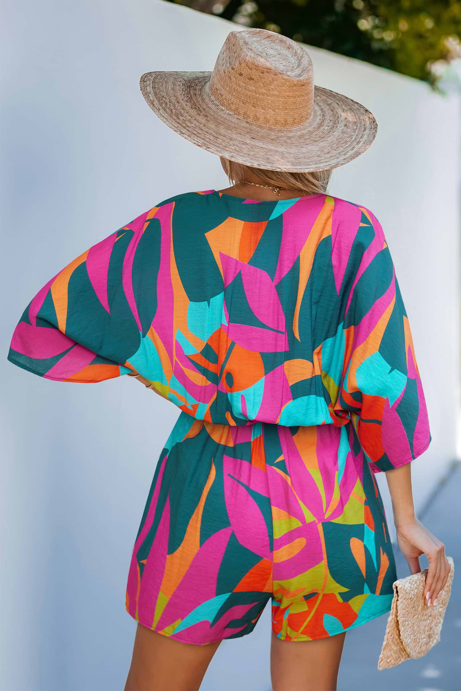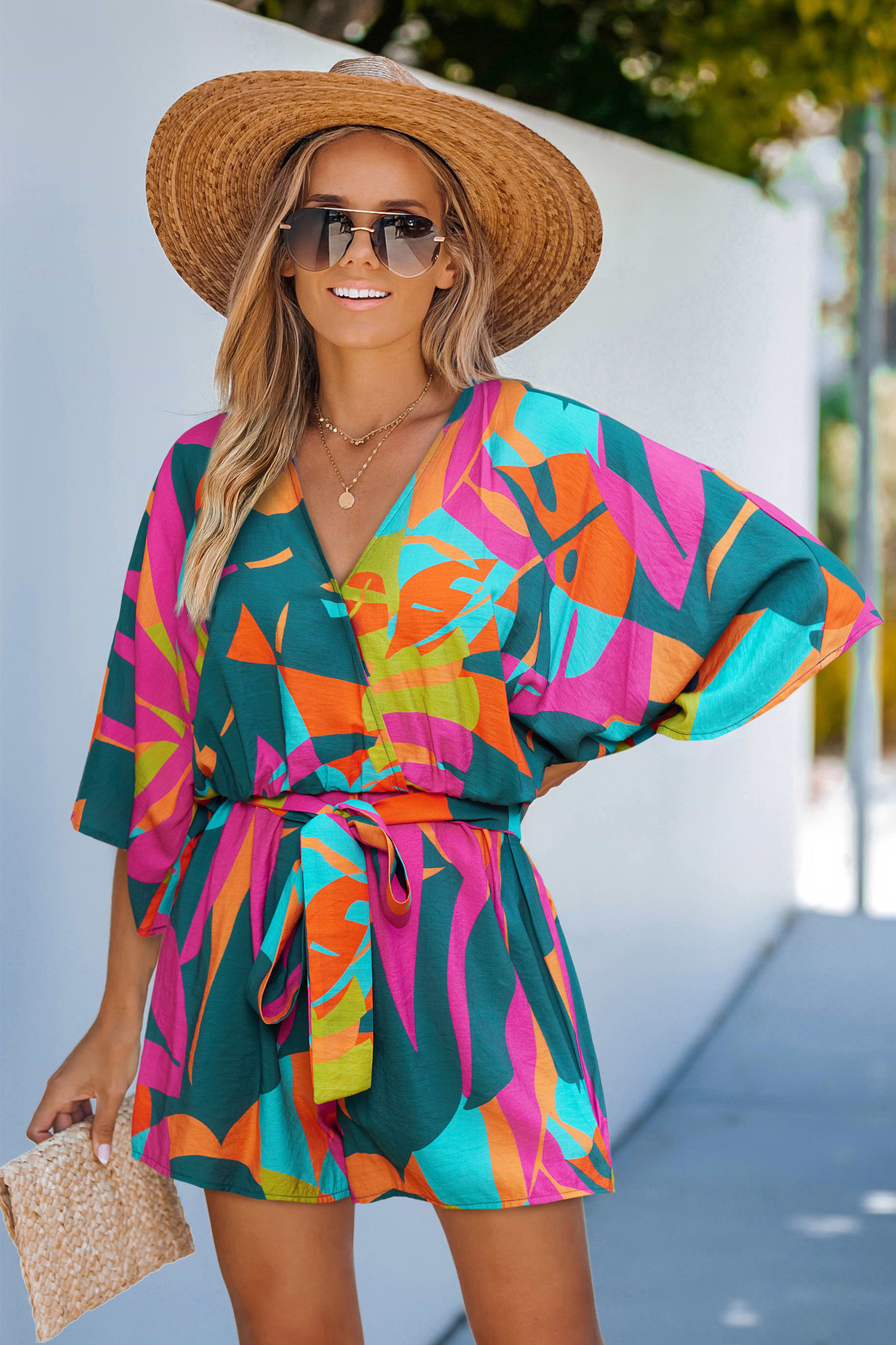 The Cove Calling Tropical Romper blends relaxed island vibes with a sleek, modern cut! It features a surplice neckline, half sleeves, and straight leg for easy, stylish summer wear.