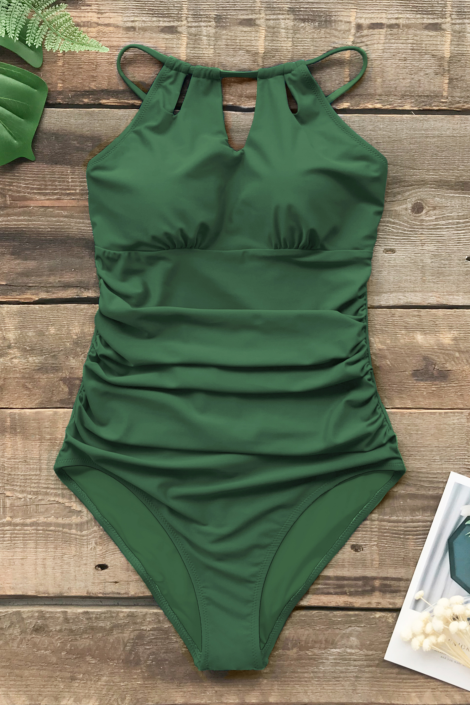 Ruching High Neck One Piece Swimsuit