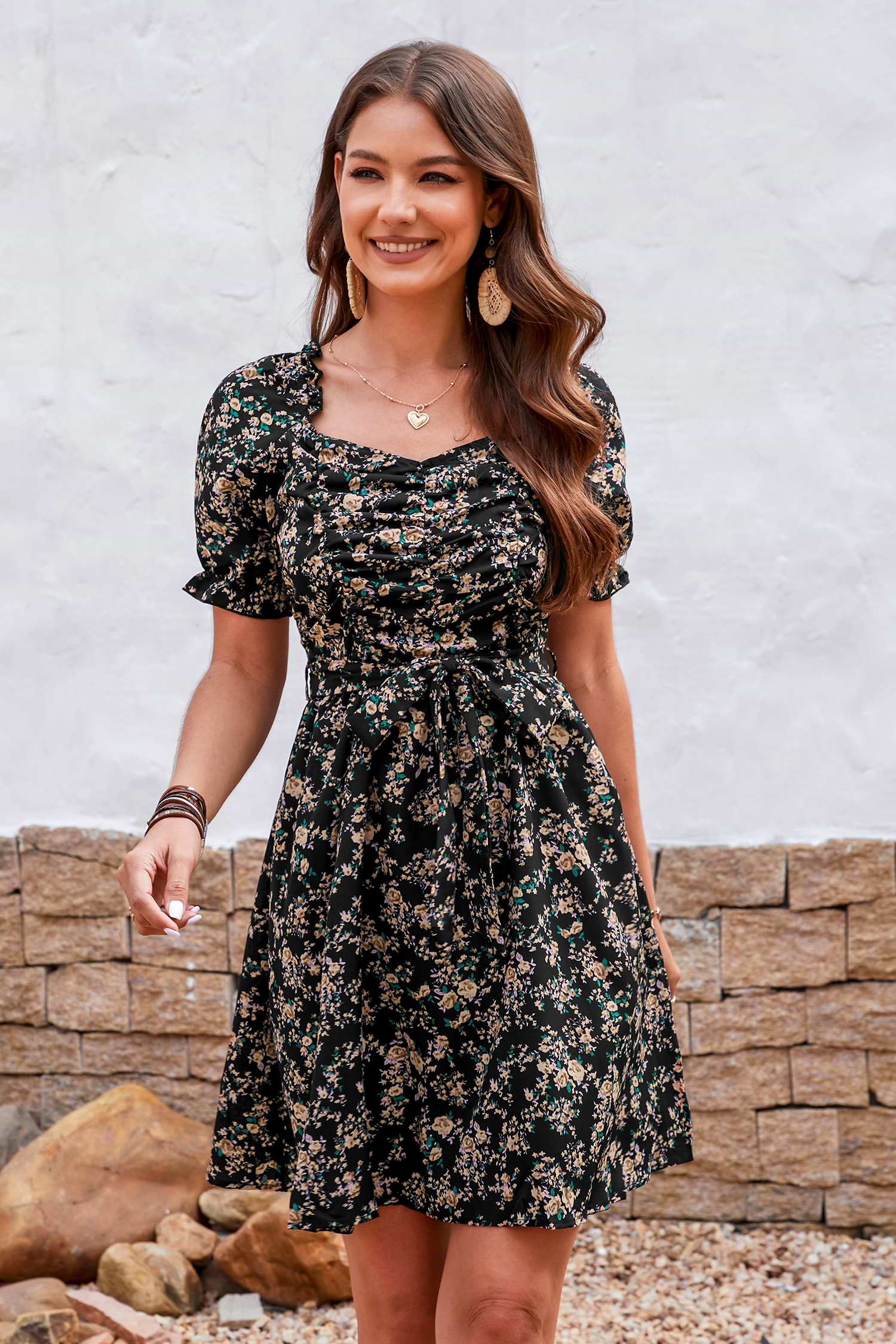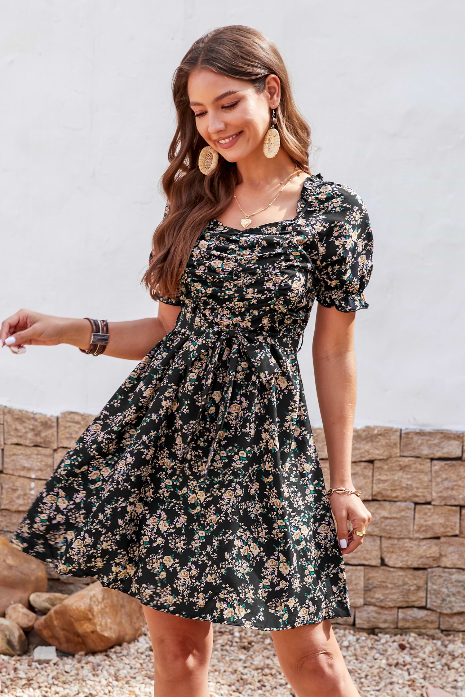 HomeDiani Beach Bubble Sleeve Frill Pleated Dress