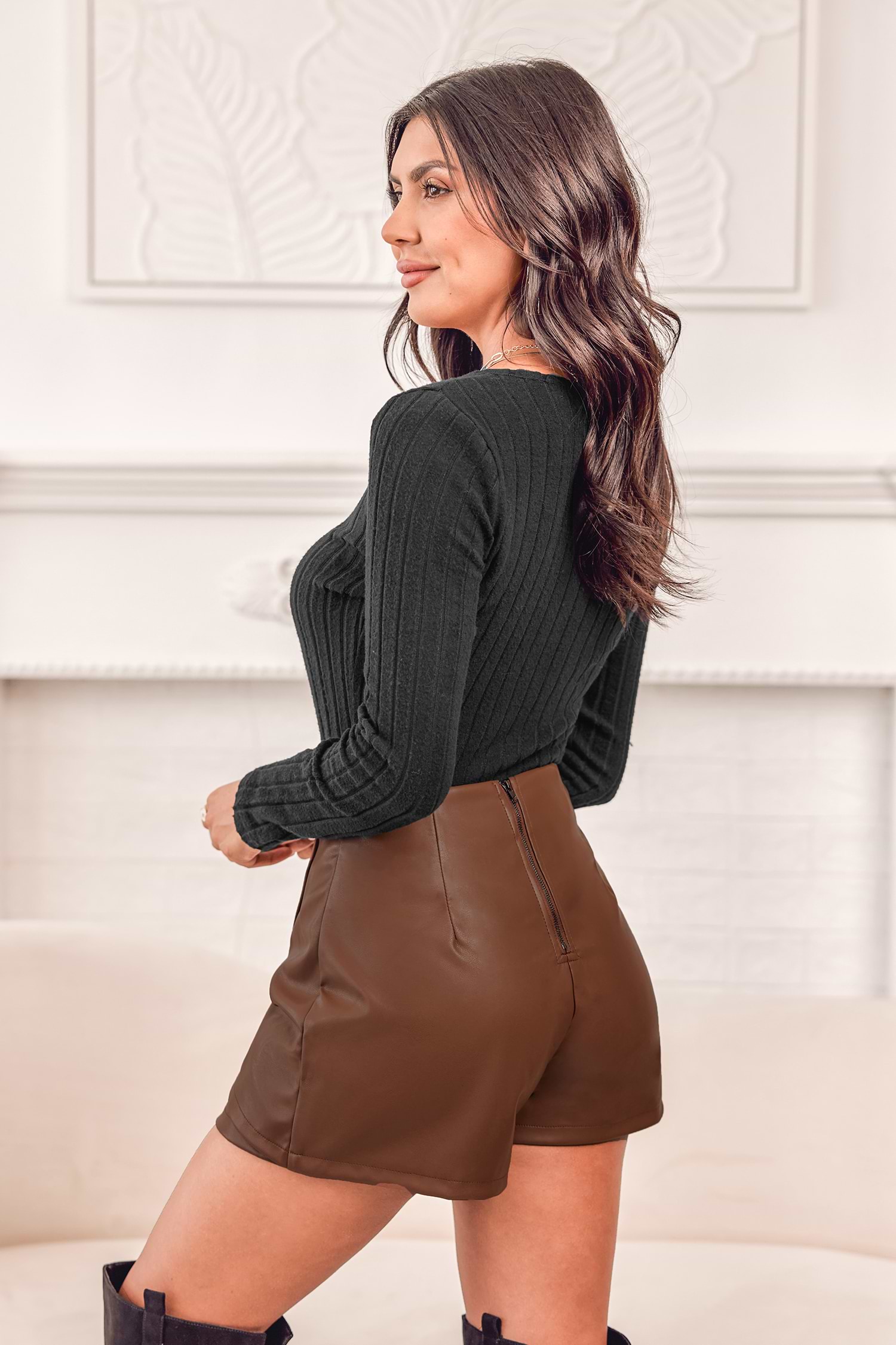 Faux Leather Wrap Mini Shorts