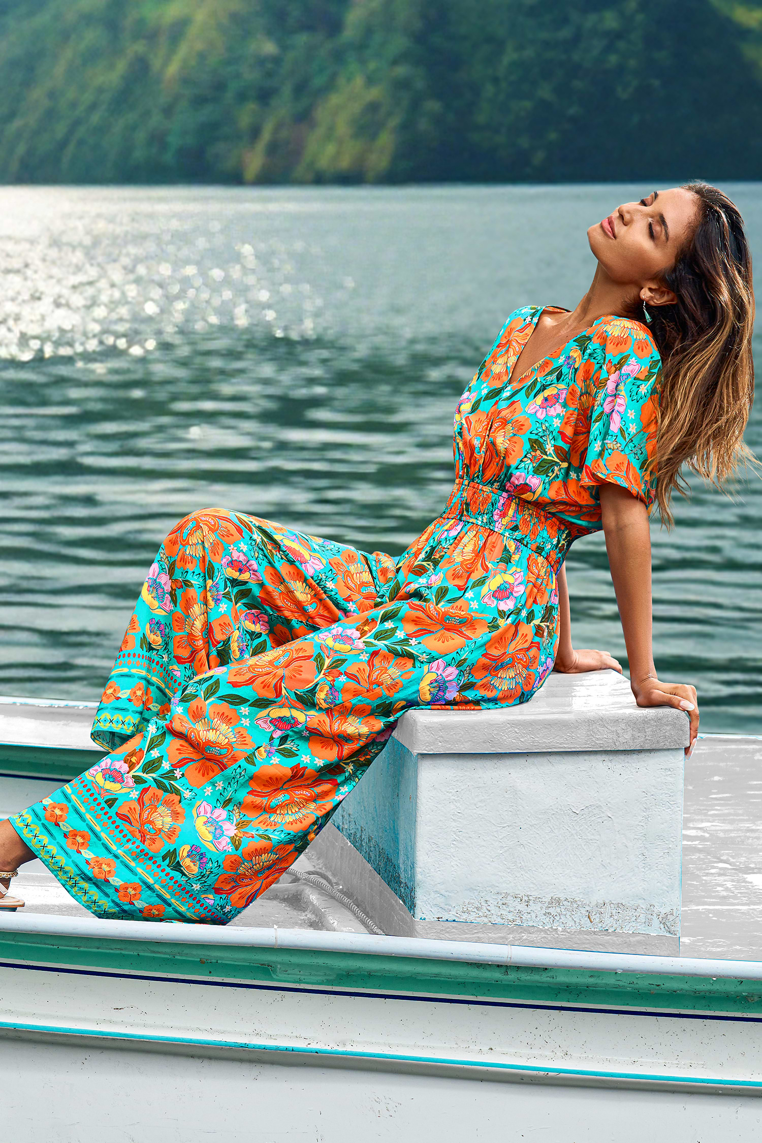 Move with ease in the Feel the Flow Floral Jumpsuit! The surplice neckline, short sleeves, and elasticized waist pair perfectly with wide legs for a relaxed, feminine fit.