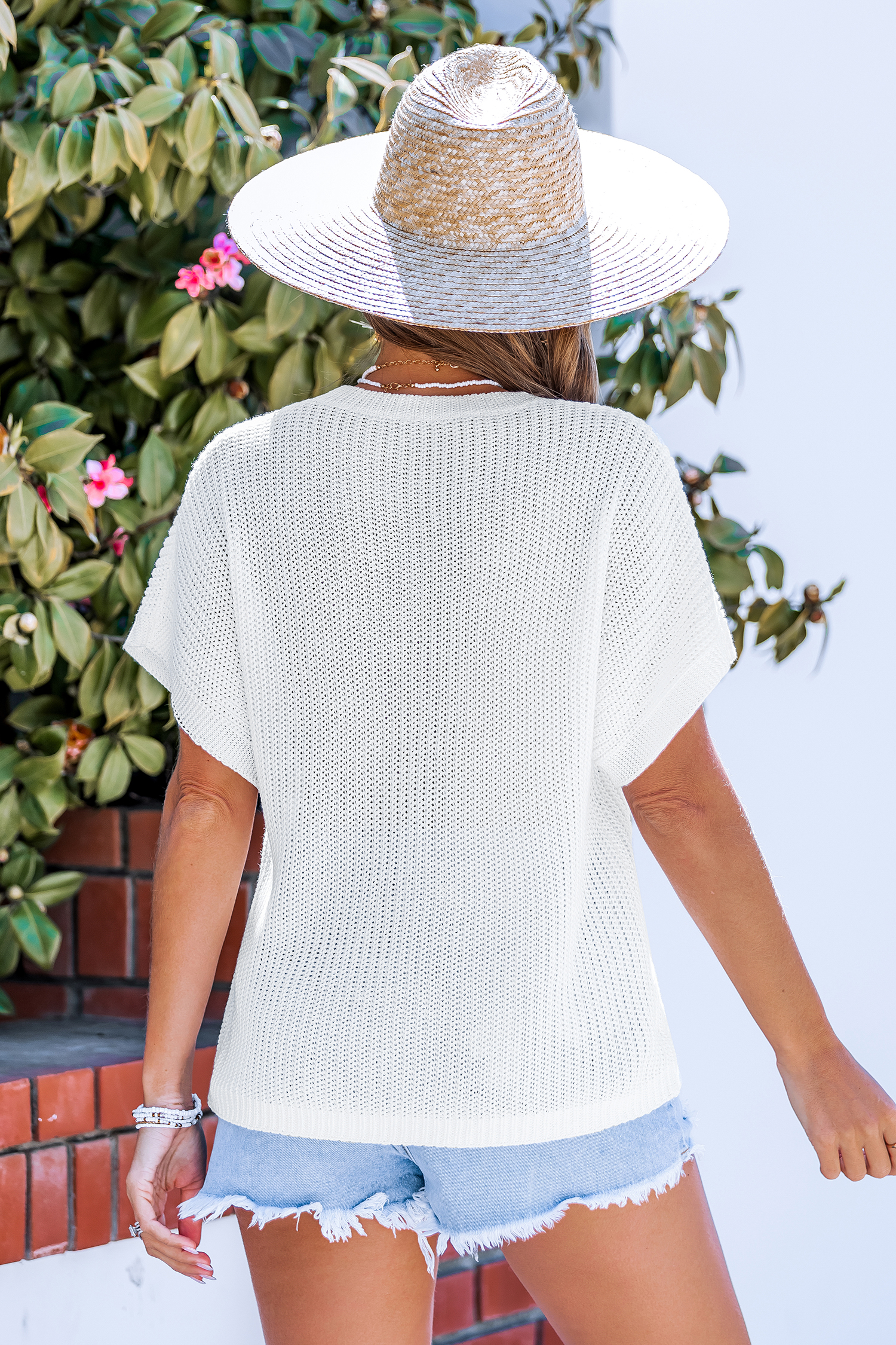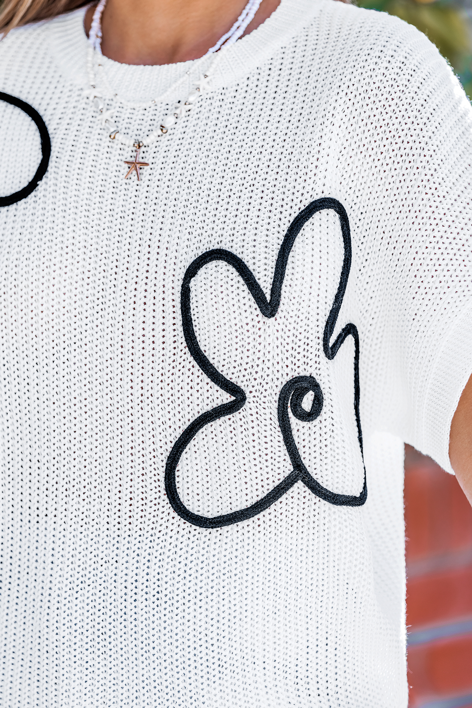 Neutral Colorblock Puff Sleeve Cable Knit Sweater