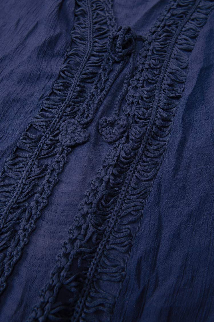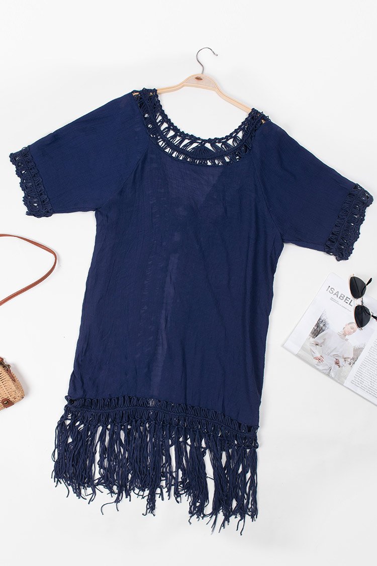 HomeFlamenco Navy Front Open Tassel Crochet Kimono