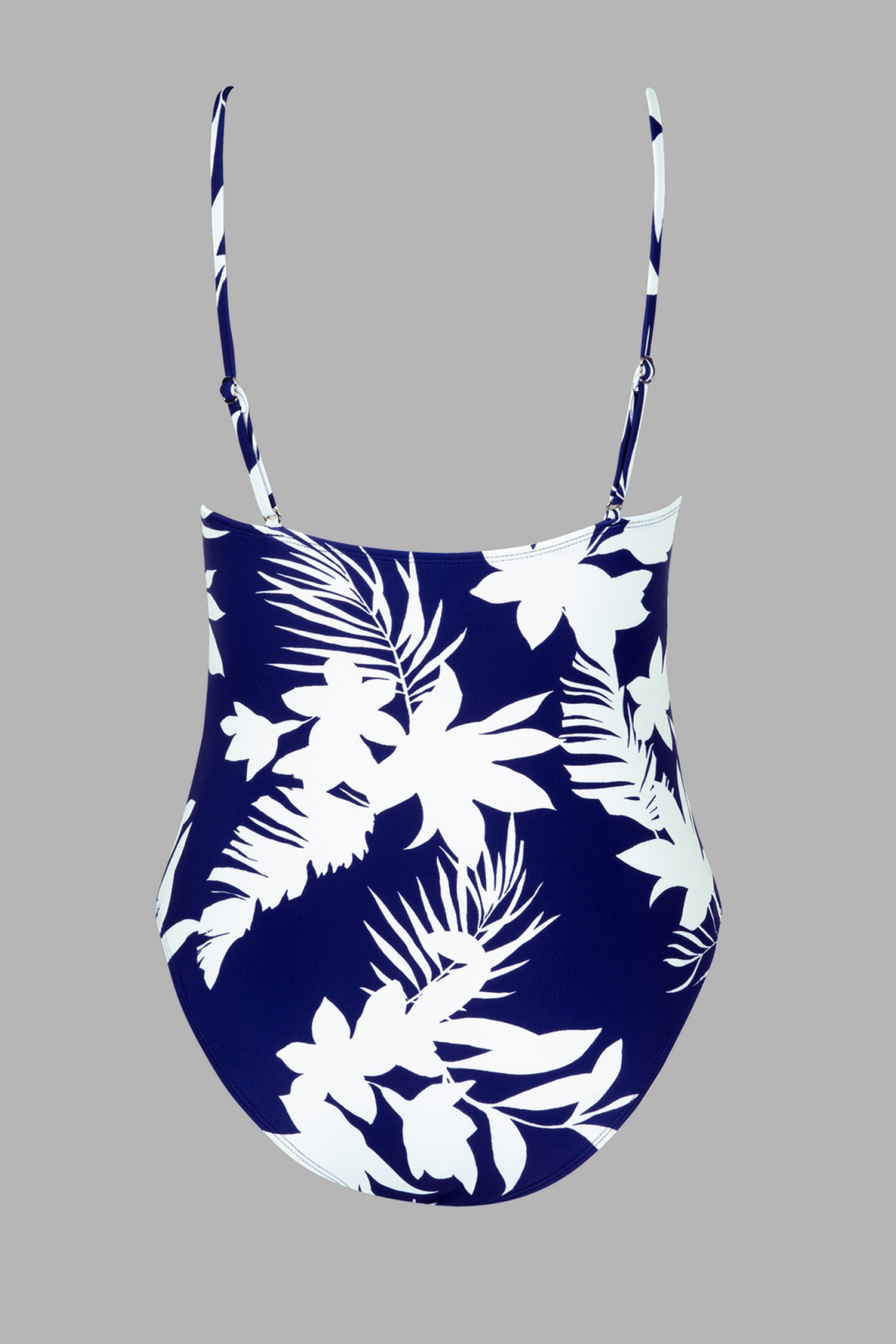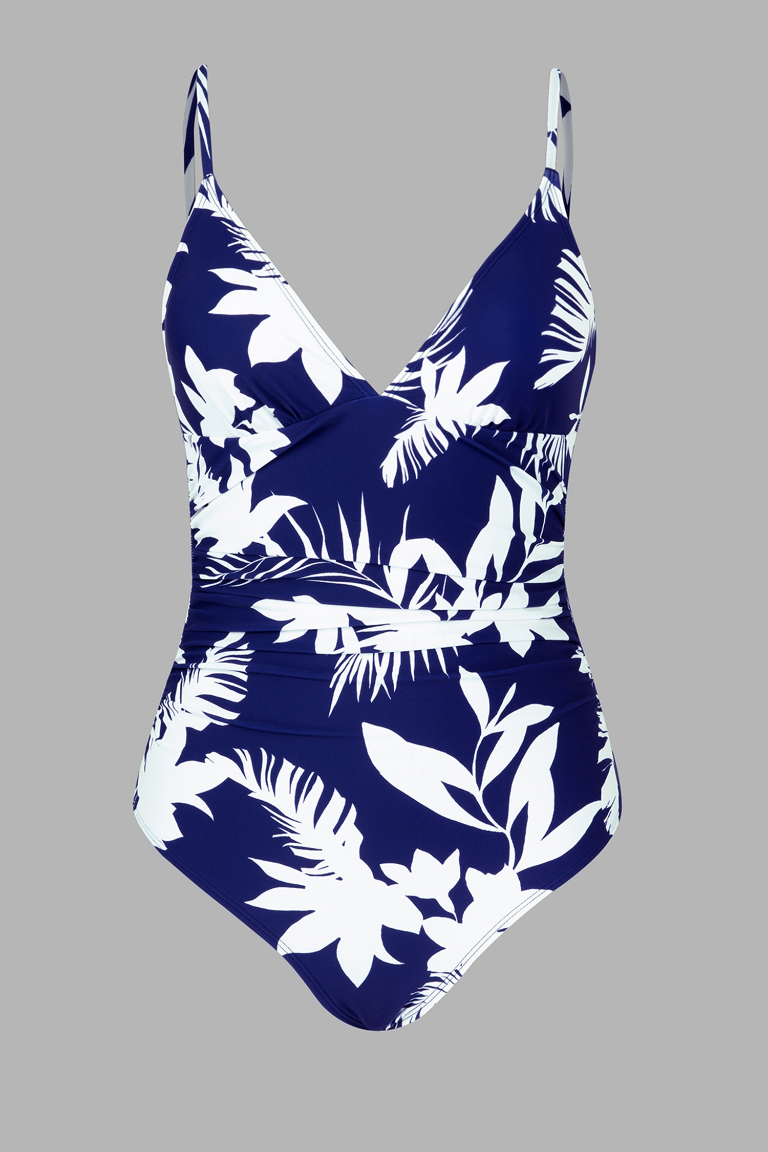 HomeFloral Print V-Neck Ruching One Piece Swimsuit