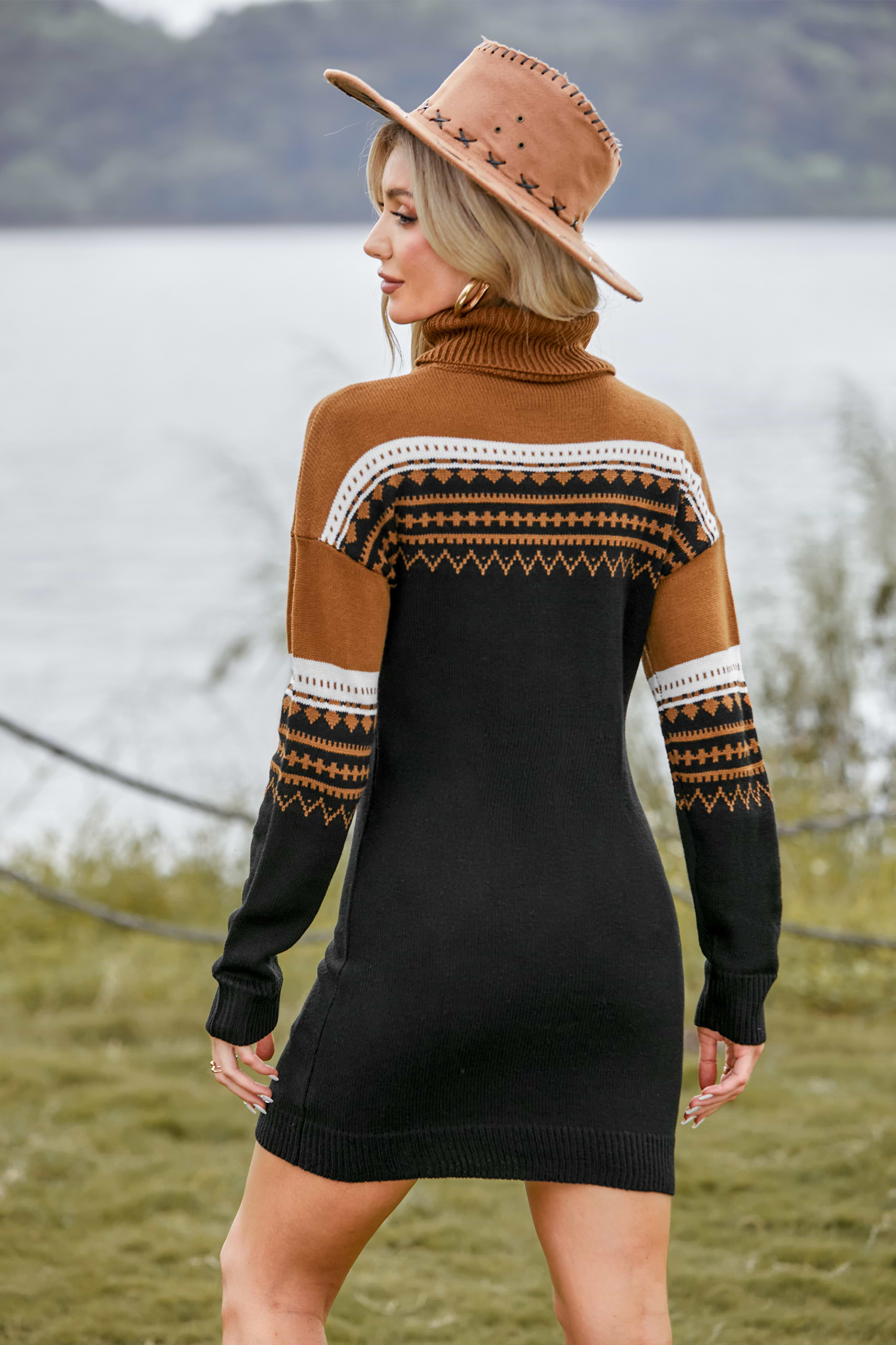 HomeGeo Print Turtleneck Knit Sweater Dress