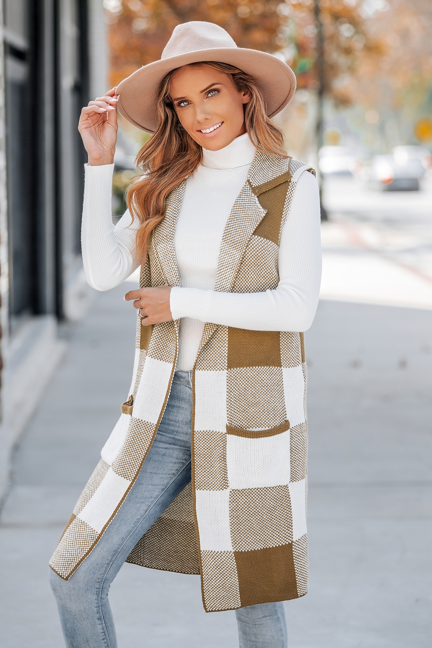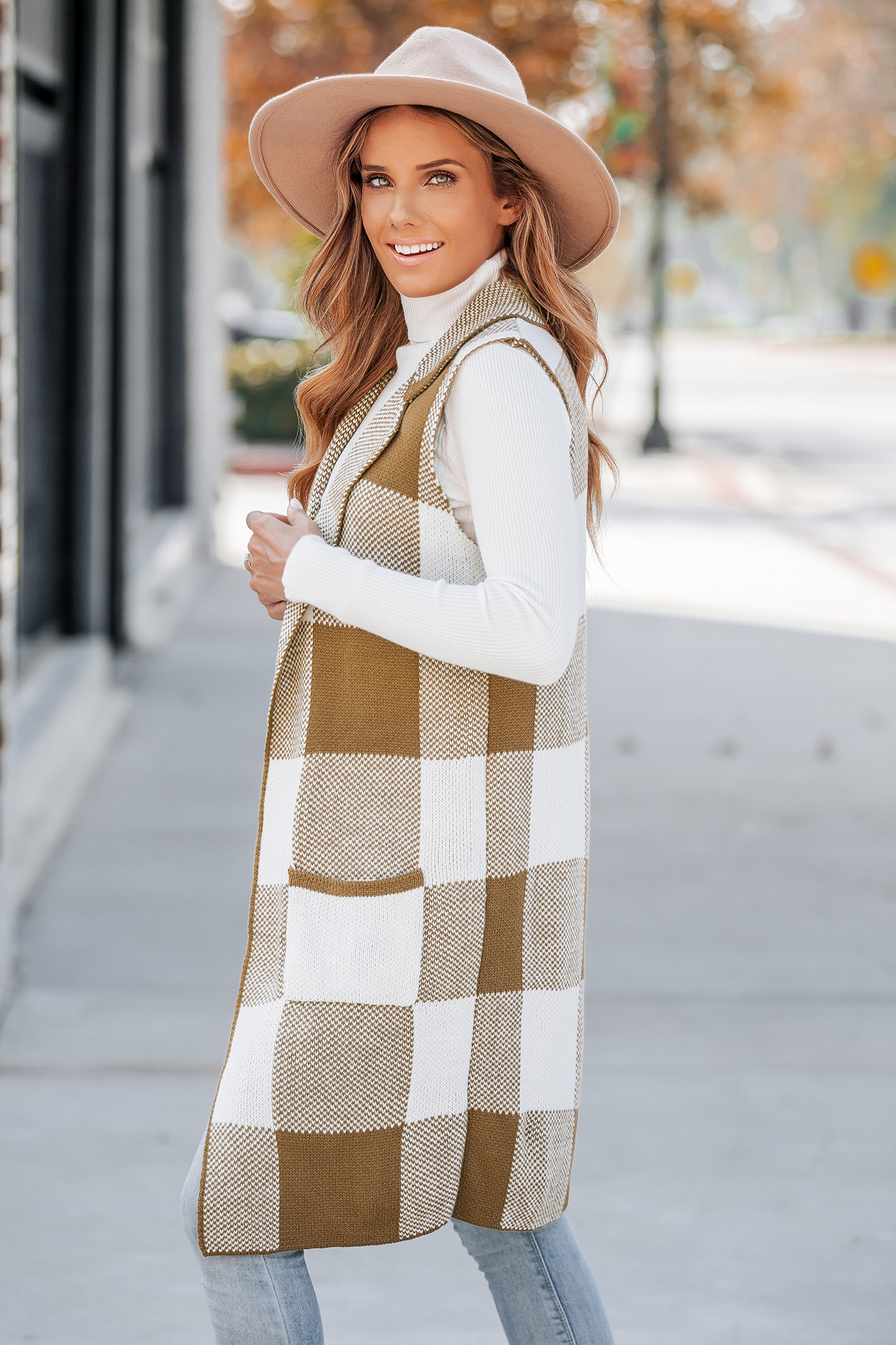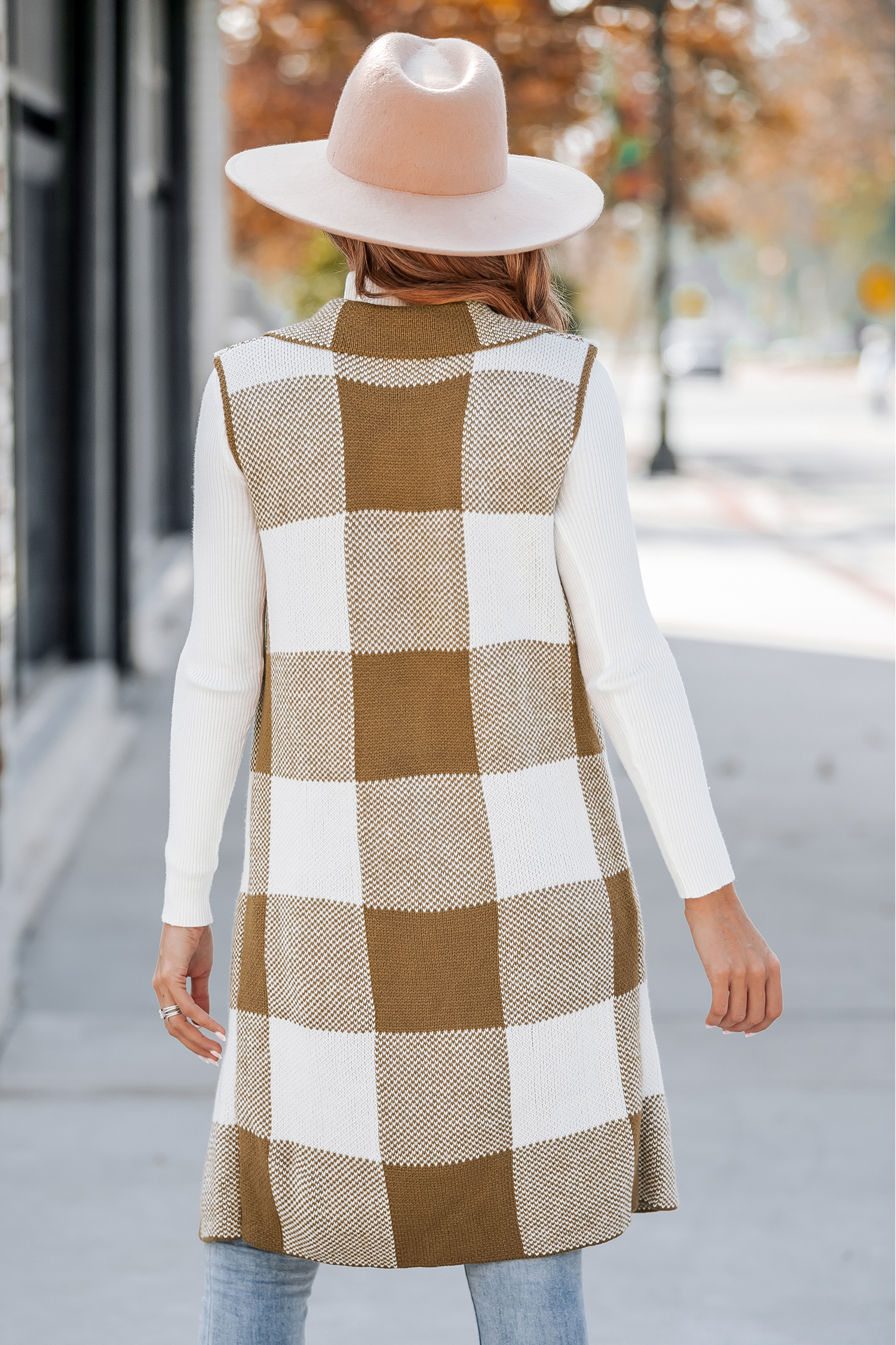 Gingham Sleeveless Longline Blazer