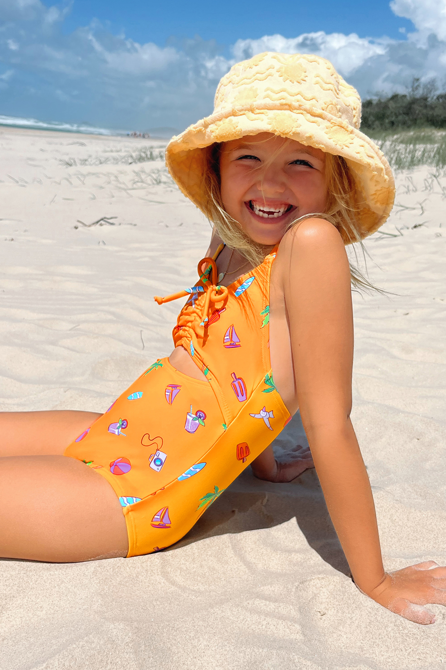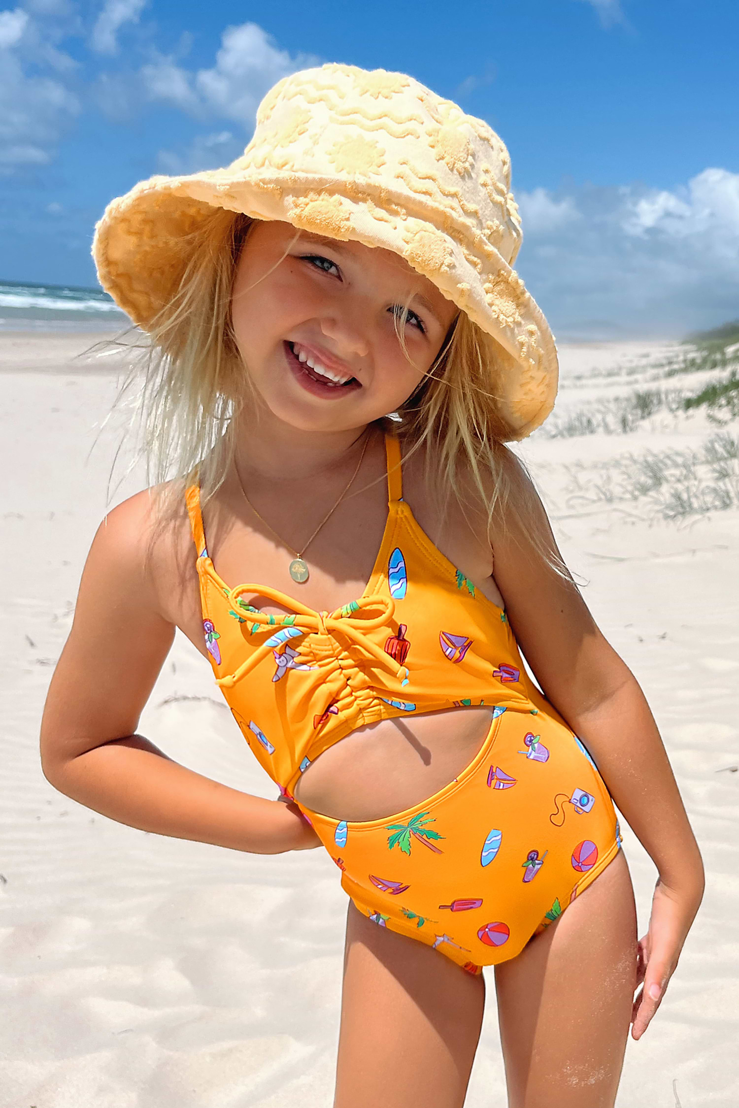 Girls Day At The Beach Conversational Print One Piece Swimsuit