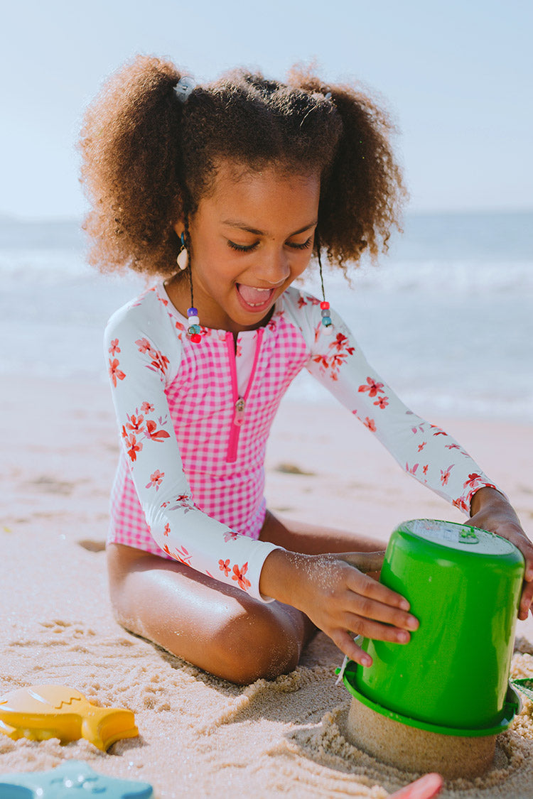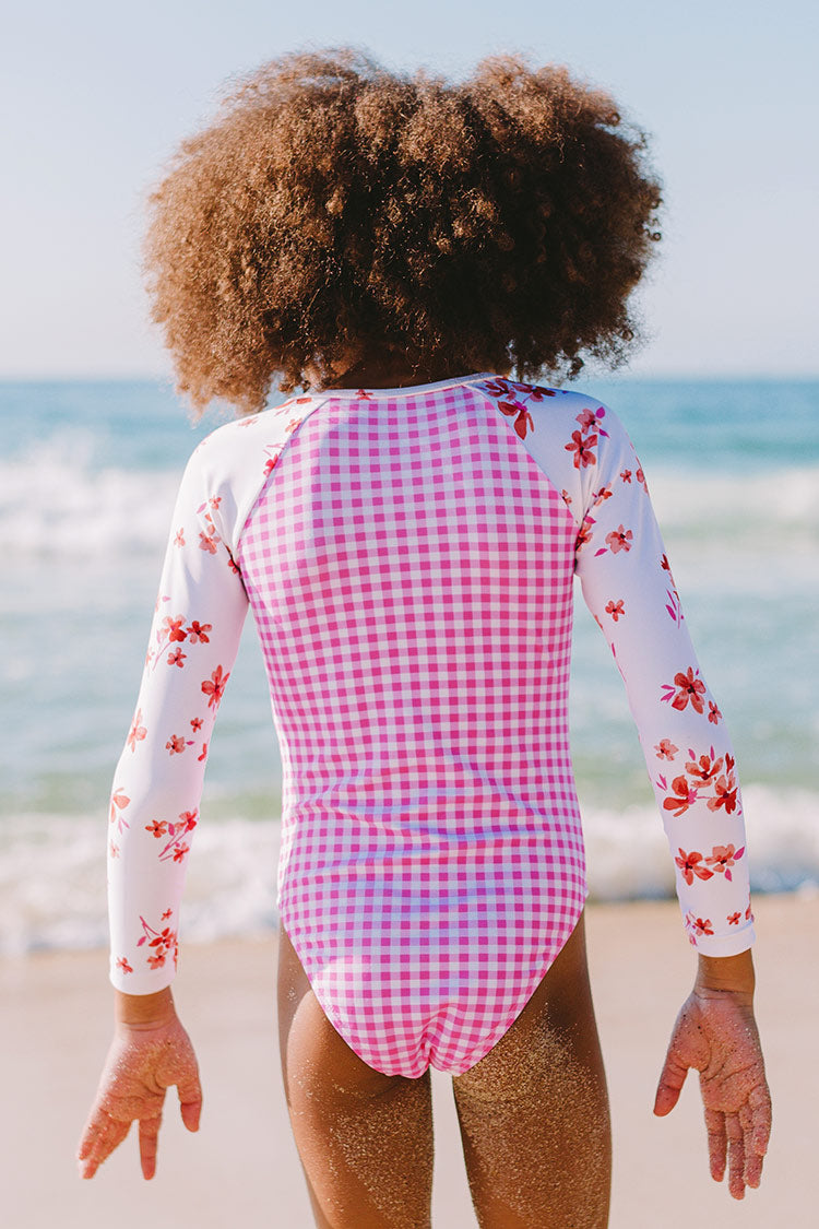 Girls' Ditsy Long Sleeve Mix Zip Swimsuit