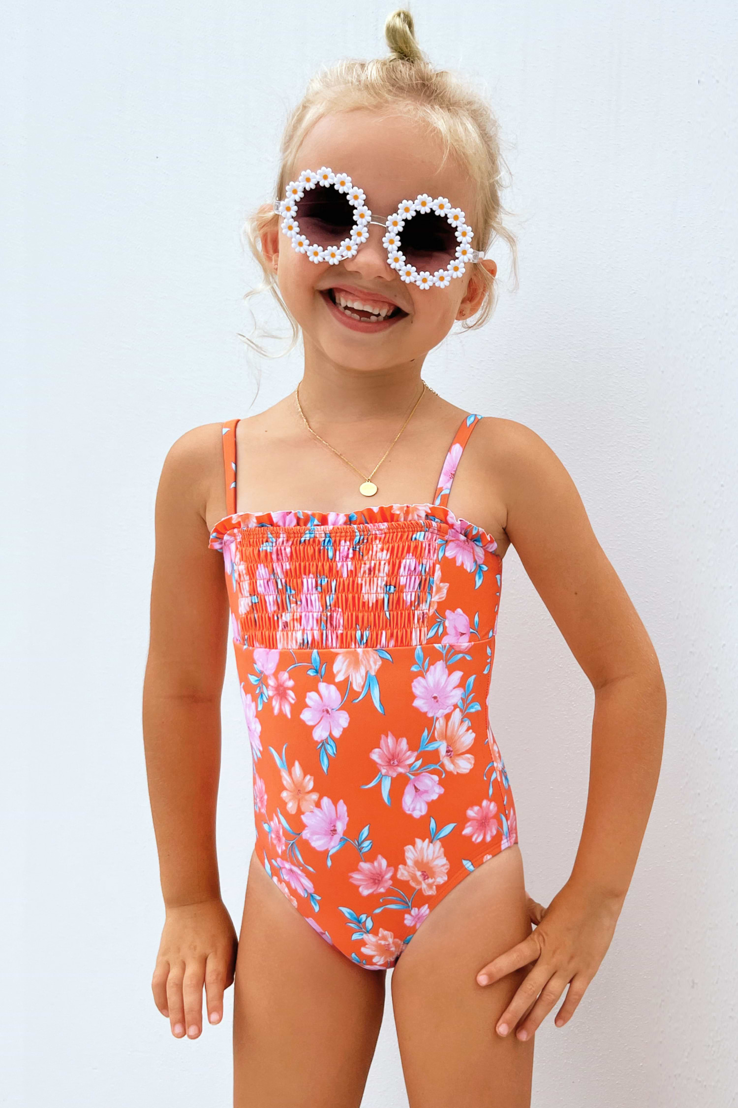 Girls Faded Night Blooming Smocked One Piece Swimsuit