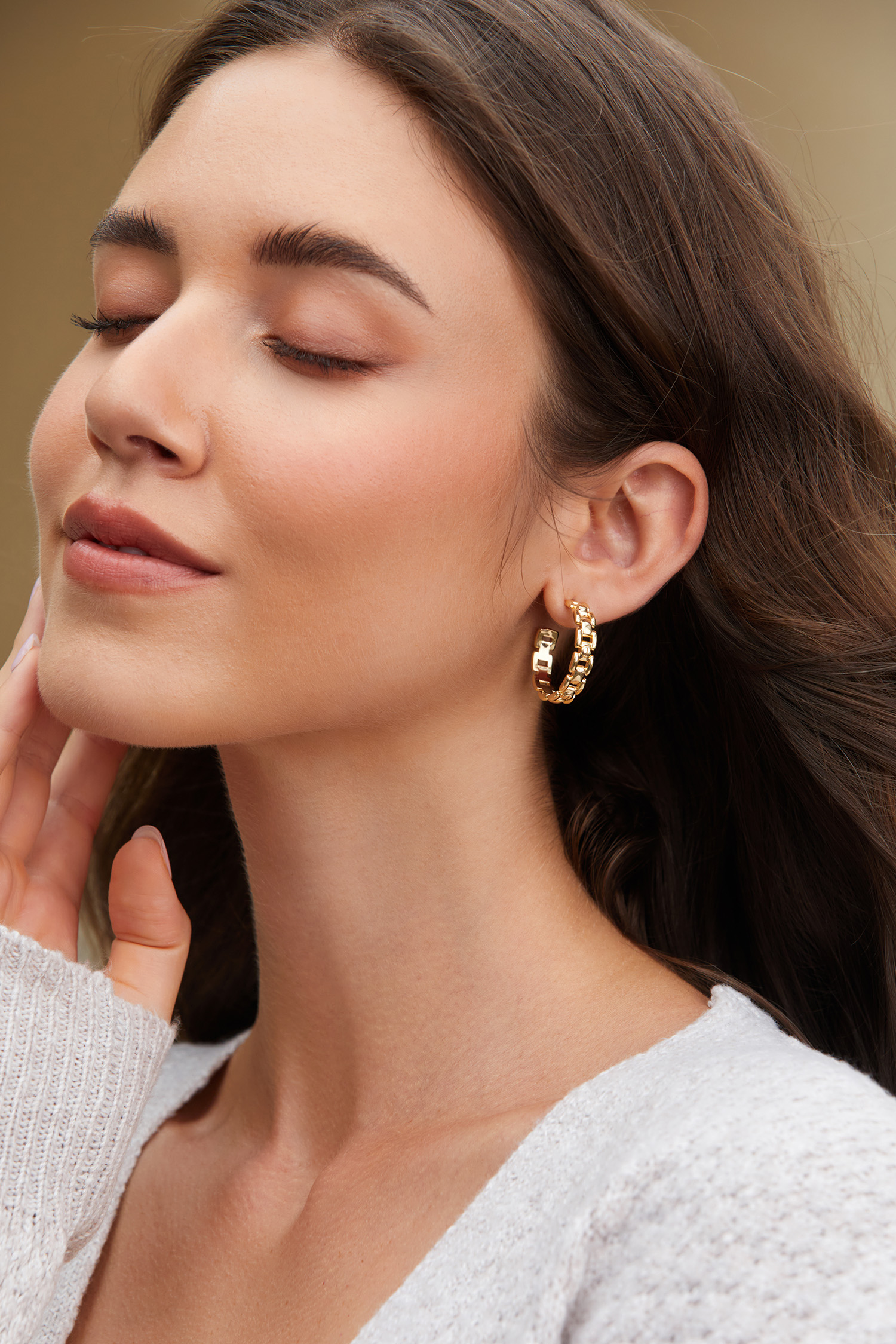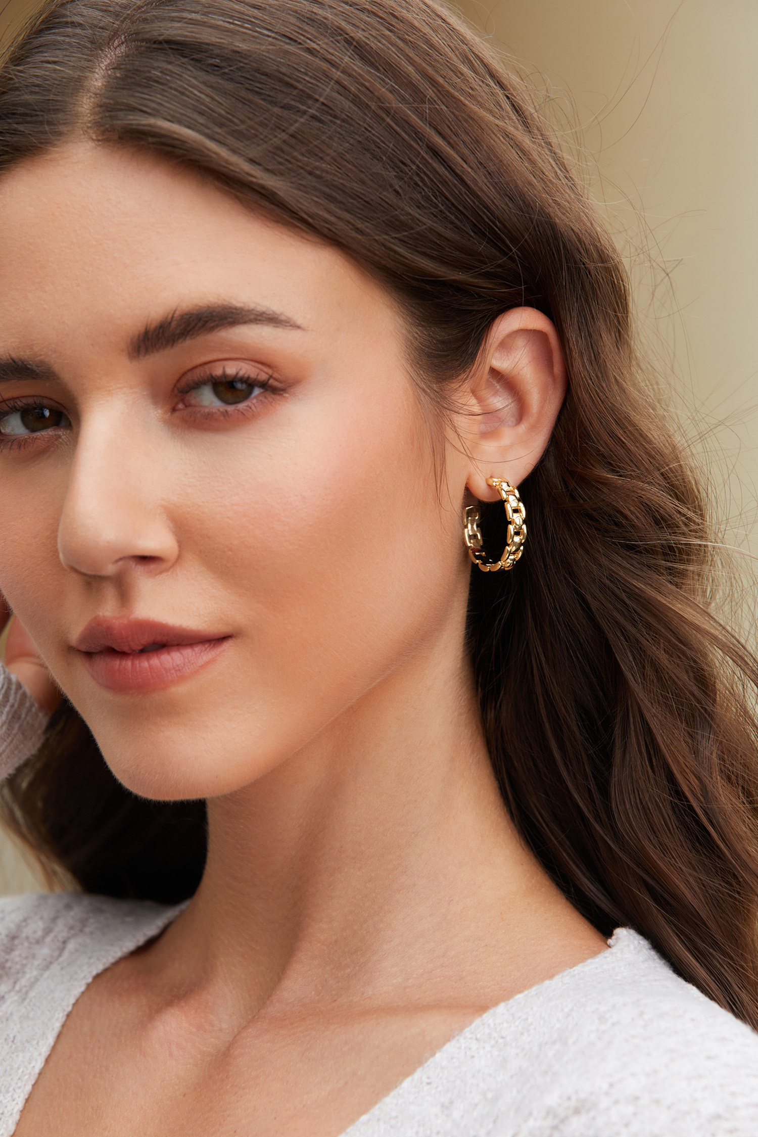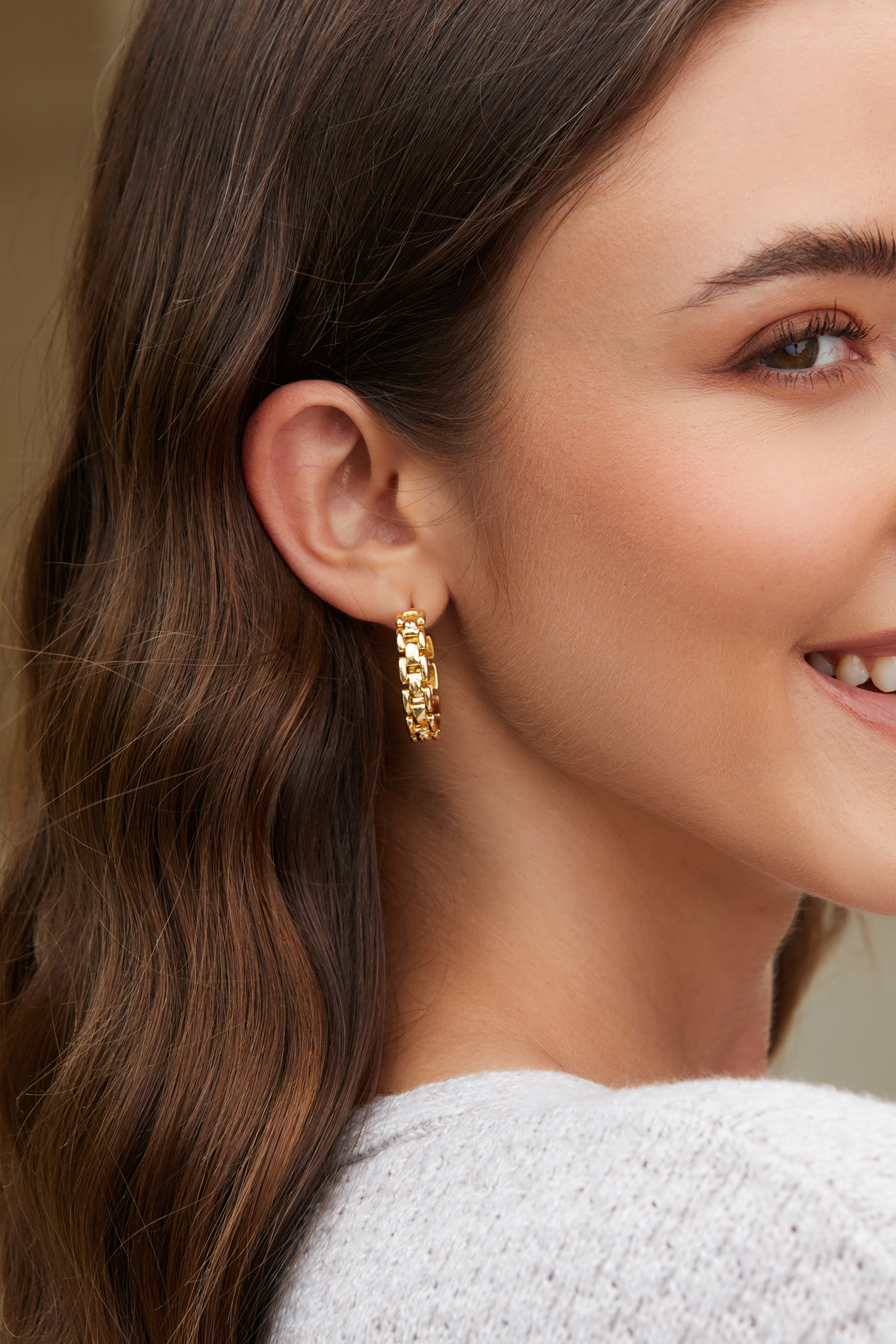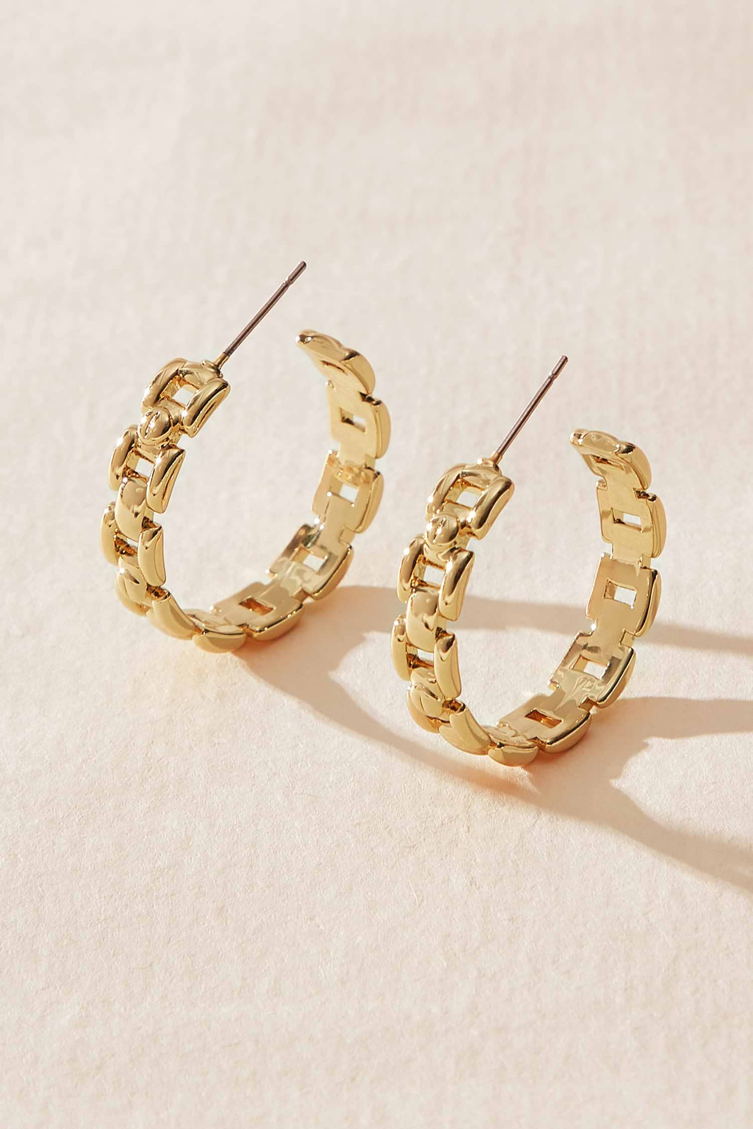 Gold-Tone Structured Chainlink Hoop Earrings