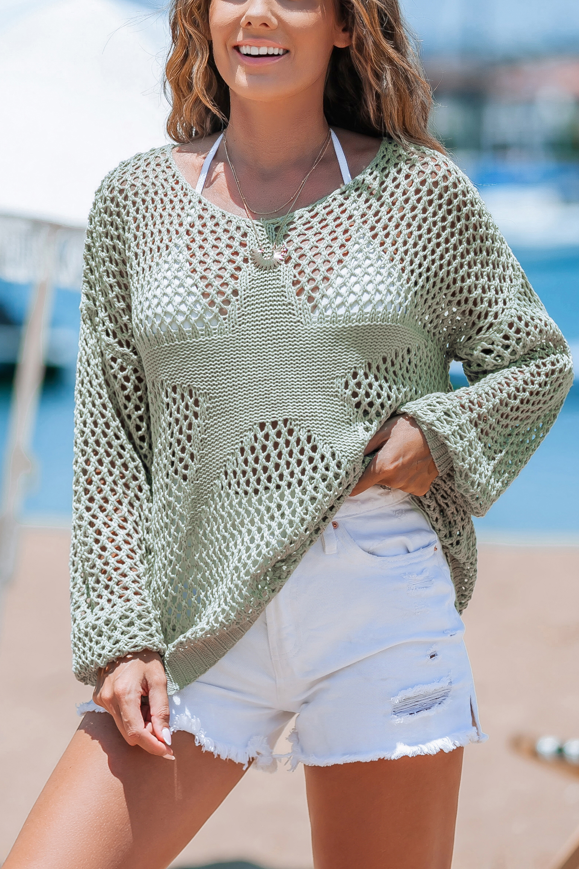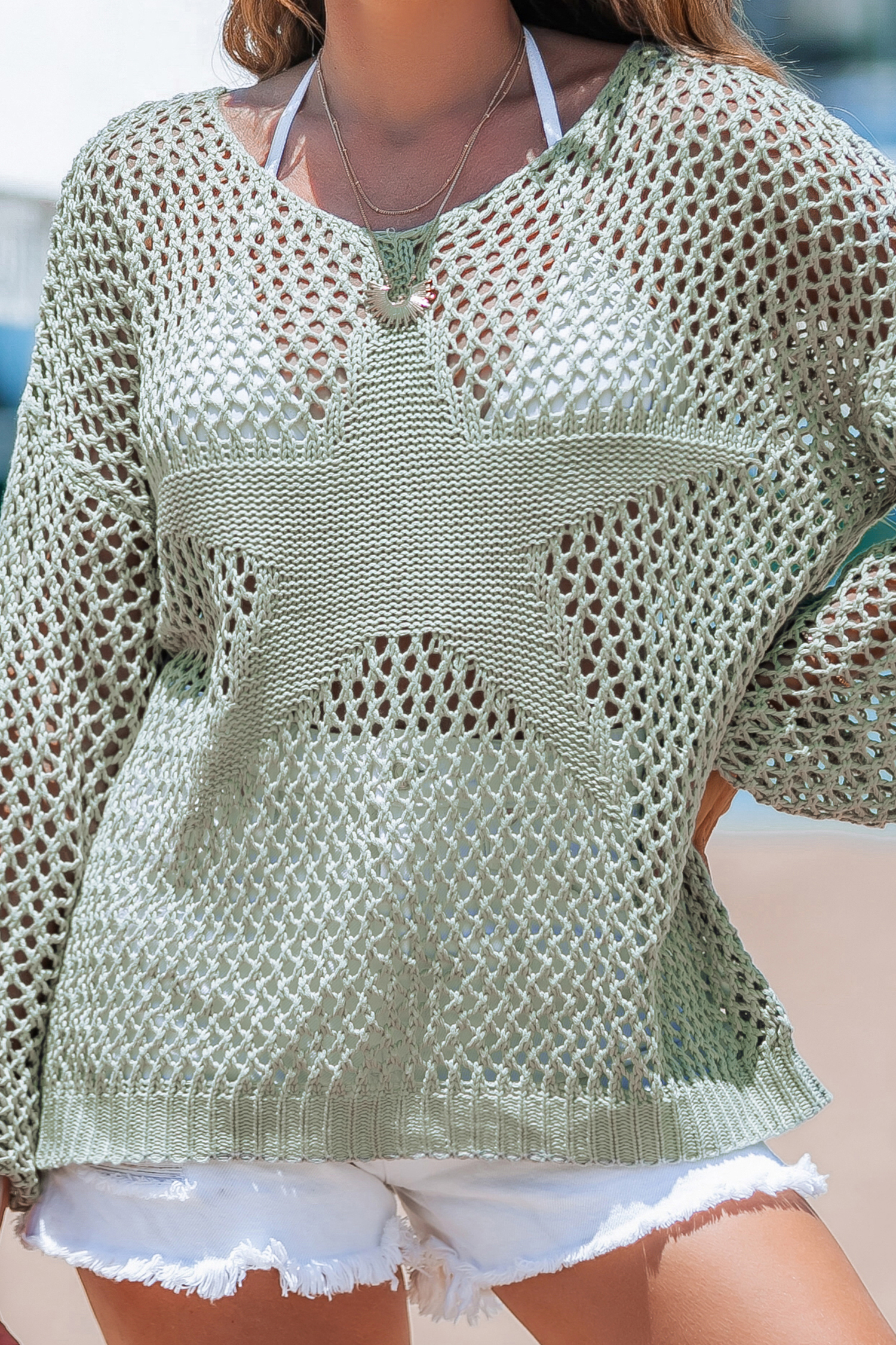 HomeGreen Long Sleeve Star Knit Sweater