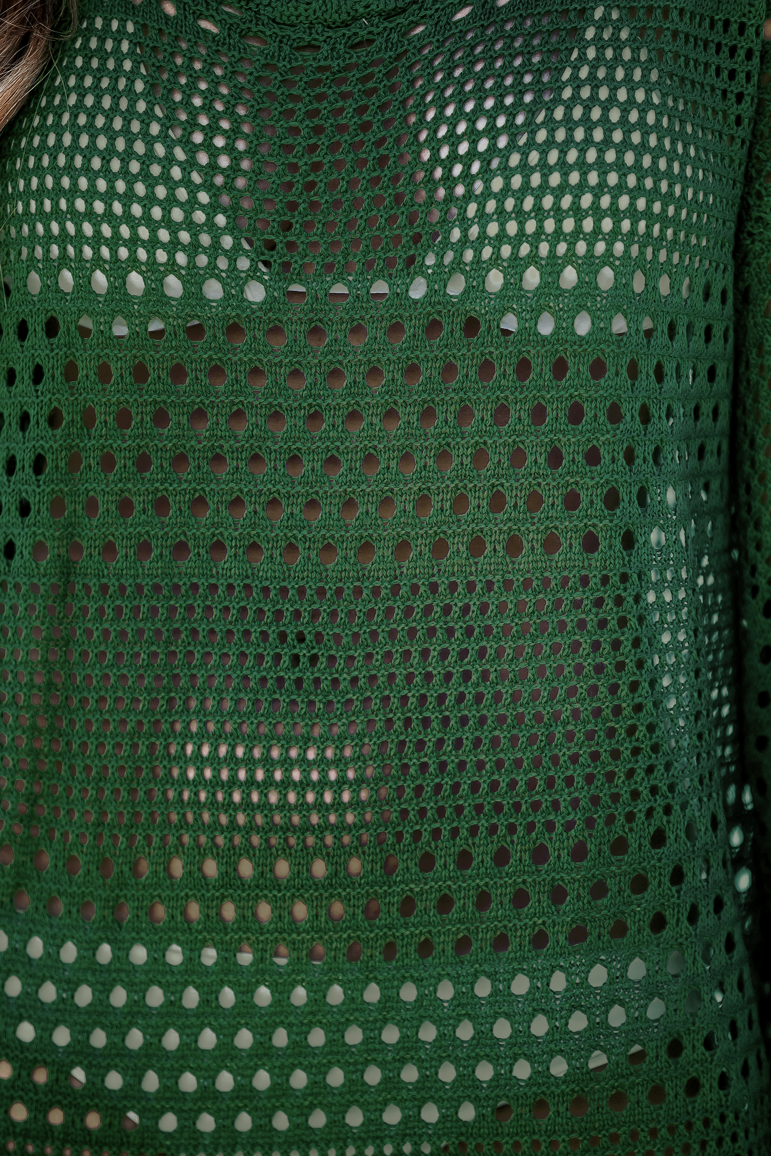 Green Round Neck Long Sleeve Crochet Cover-Up Dress