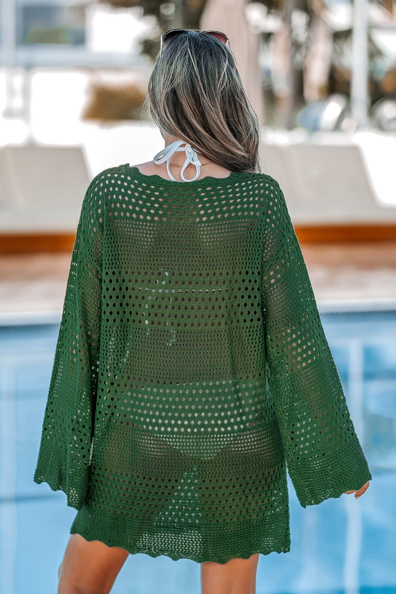HomeGreen Round Neck Long Sleeve Crochet Cover-Up Dress