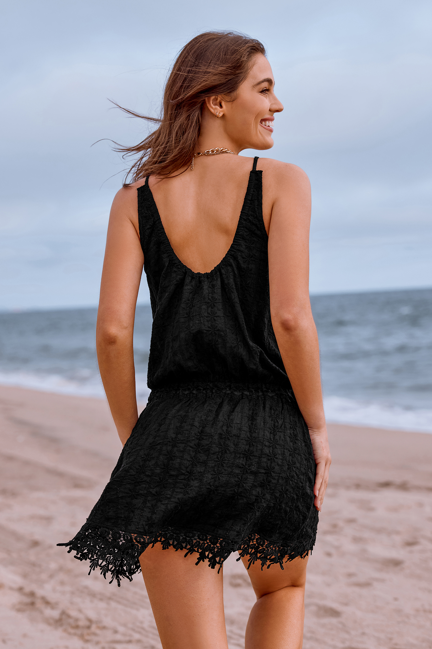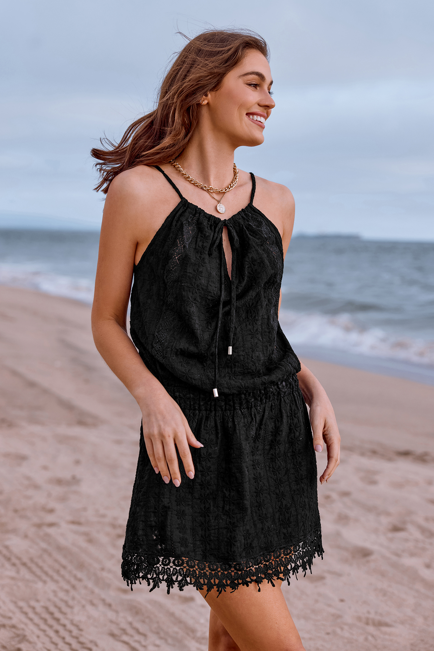 Lace Tie Front Cover-Up Mini Dress