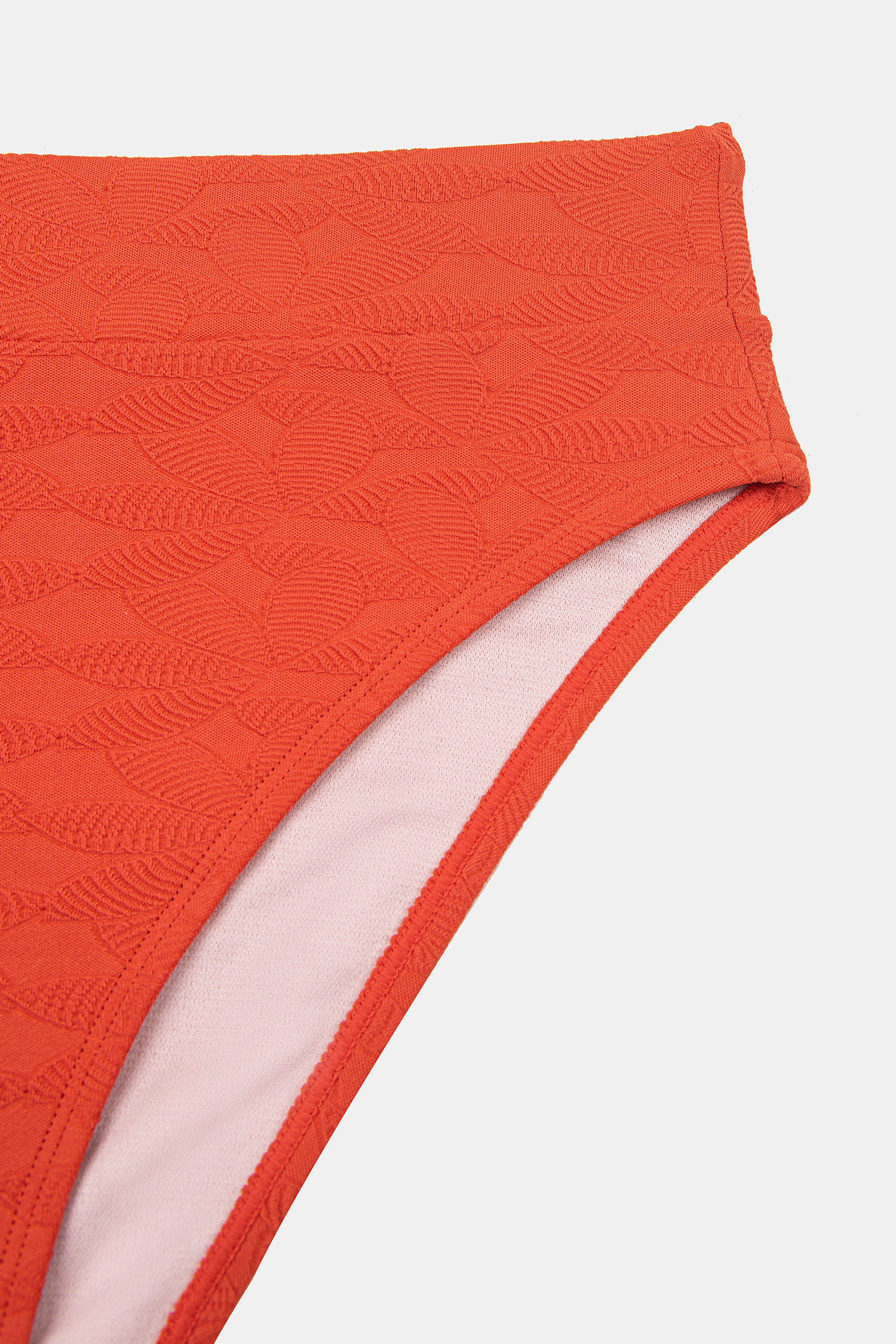 Leaf Jacquard Banded High Waist Cheeky Bikini Bottoms