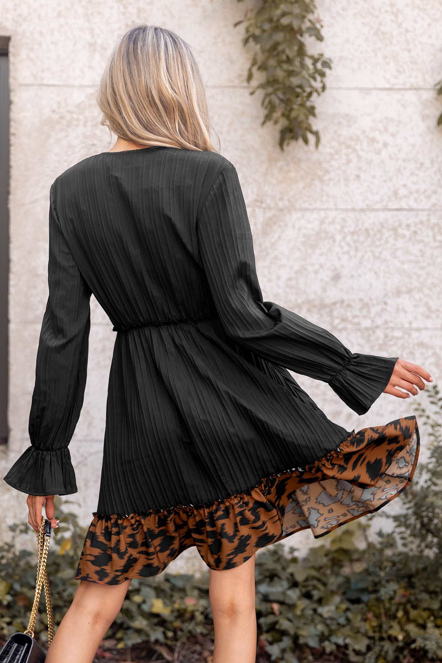 HomeLeopard Print Trumpet Sleeve Mini Dress