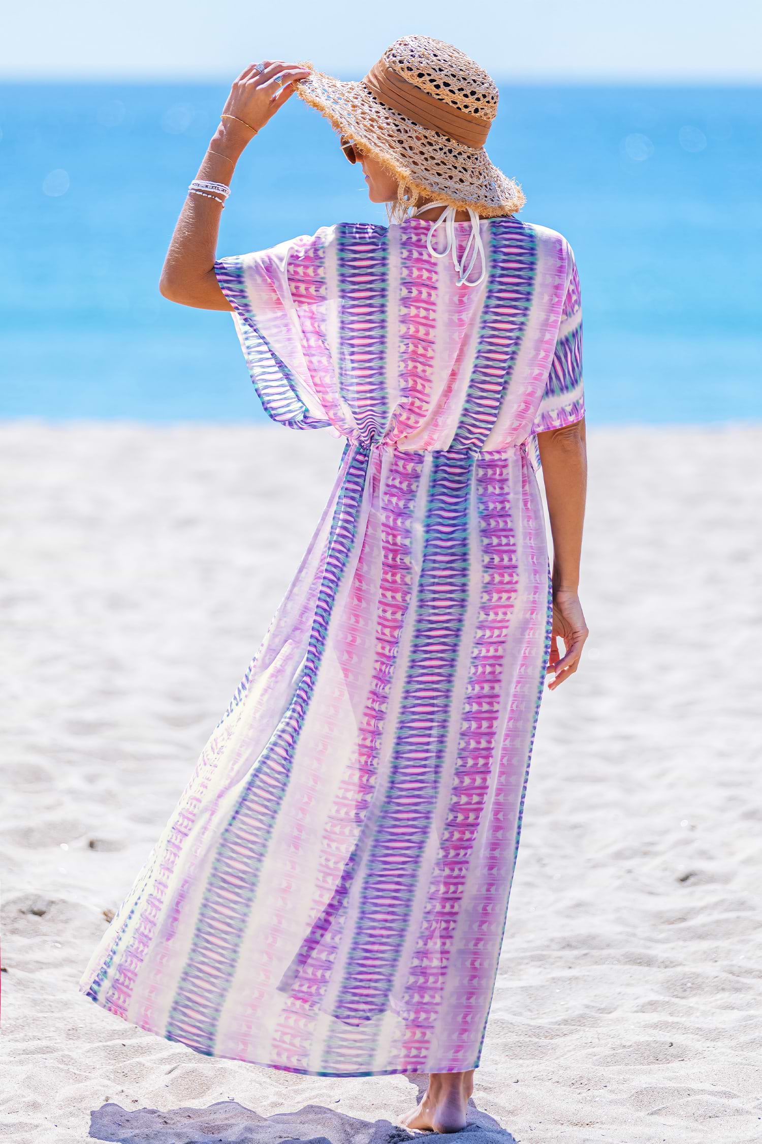 The Mixed Feelings Abstract Cover-Up Maxi Dress knows how to keep things interesting! It features a plunging neckline, short sleeves, and a breezy maxi length for an effortlessly bold beach layer.