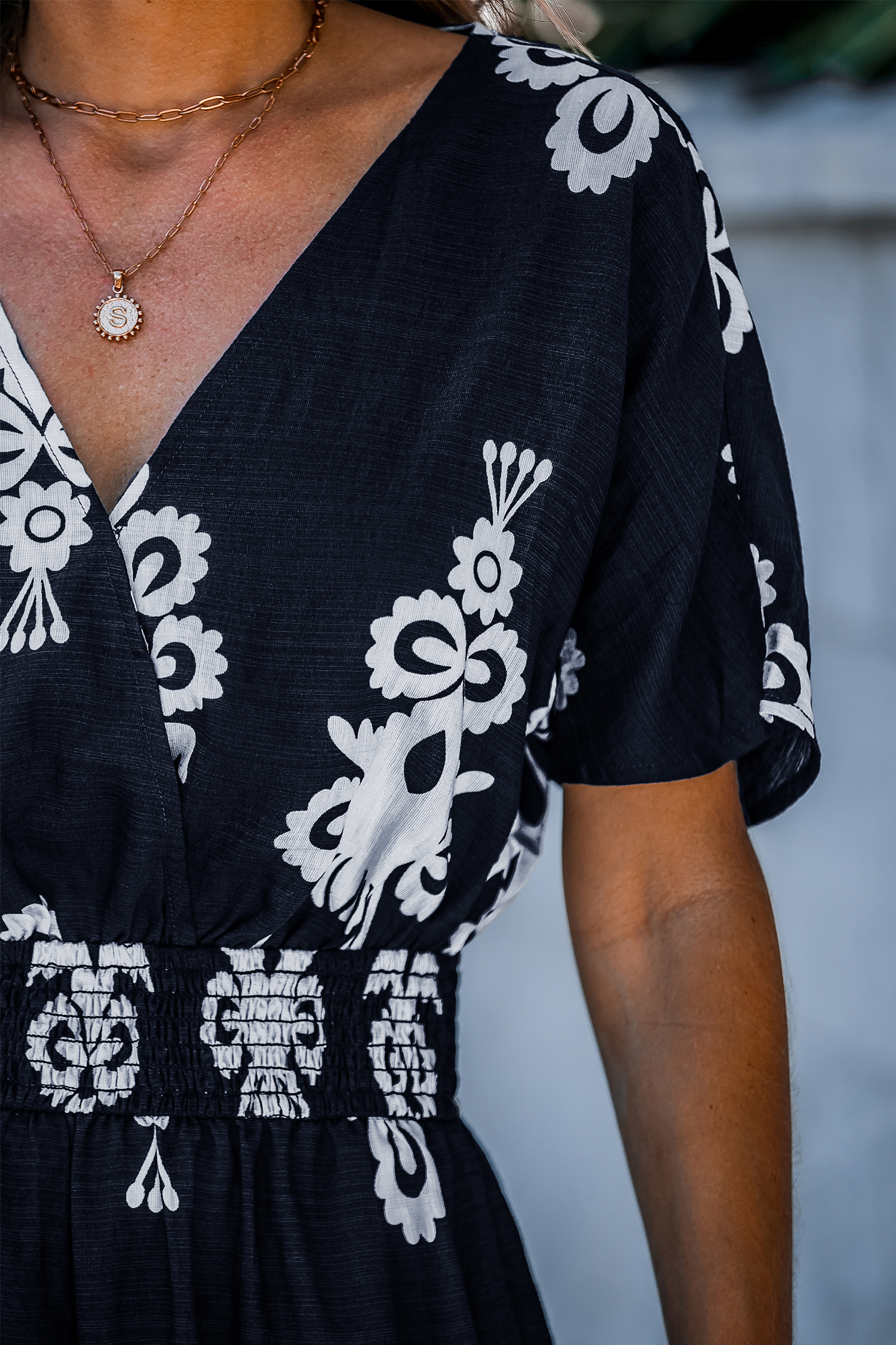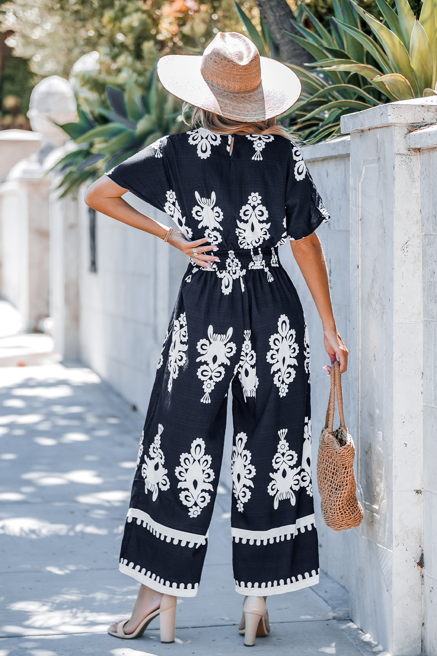 HomeNavy Smocked Waist Wide Leg Jumpsuit