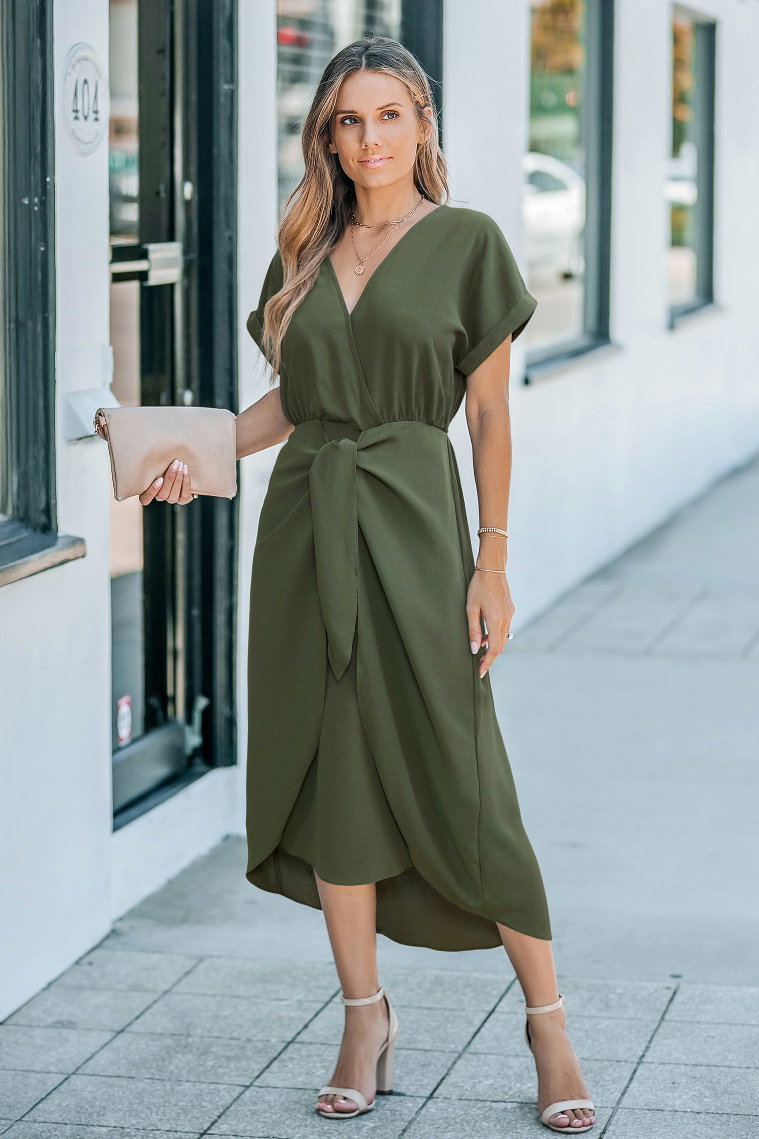 HomeOlive Short Sleeve Waist Wrap Midi Dress