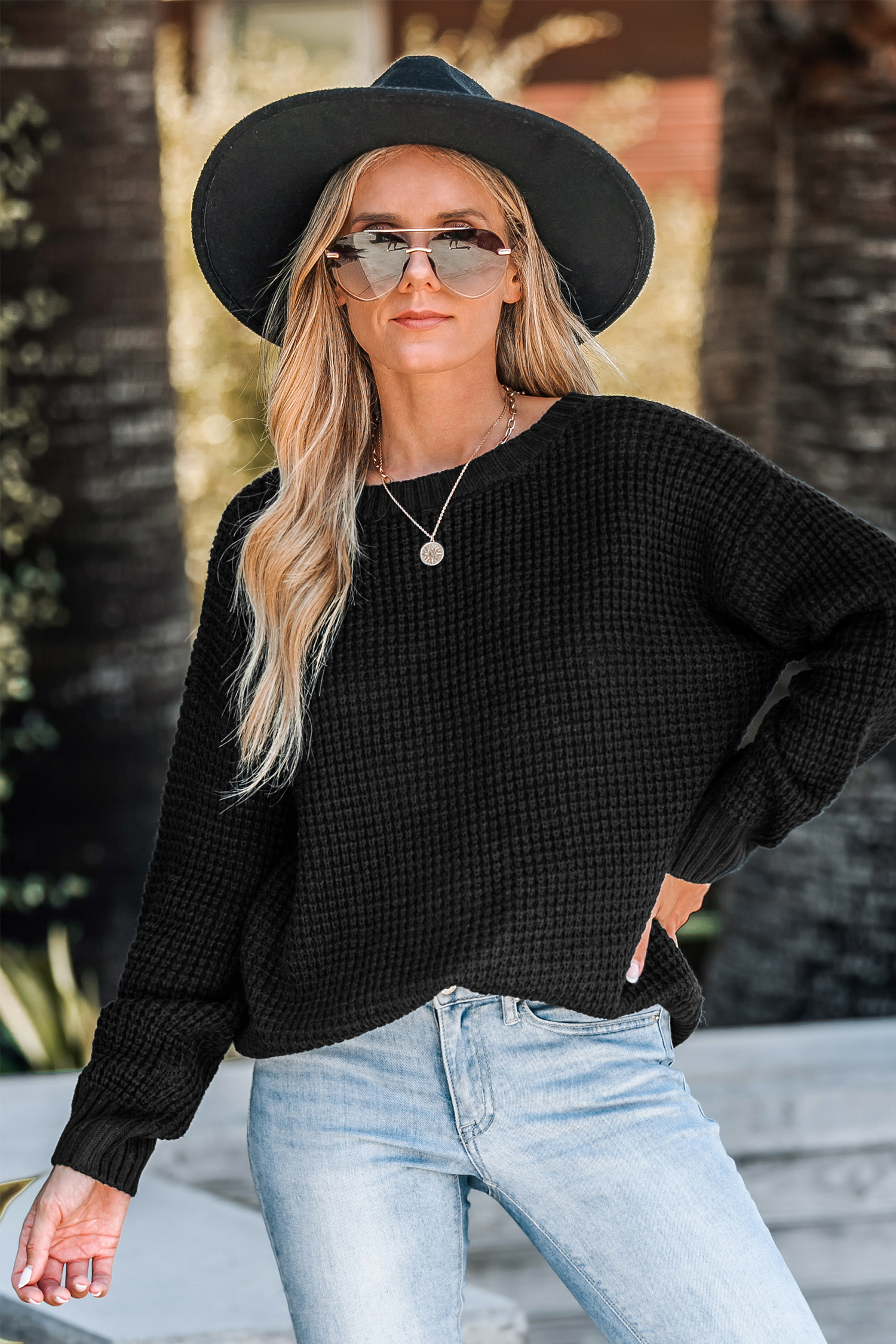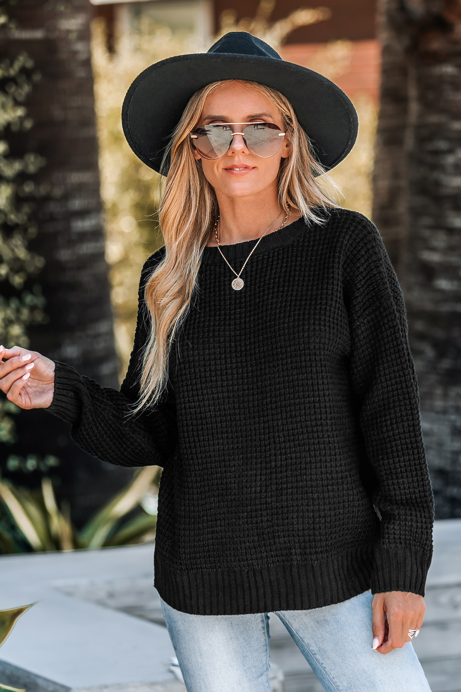 Neutral Colorblock Puff Sleeve Cable Knit Sweater