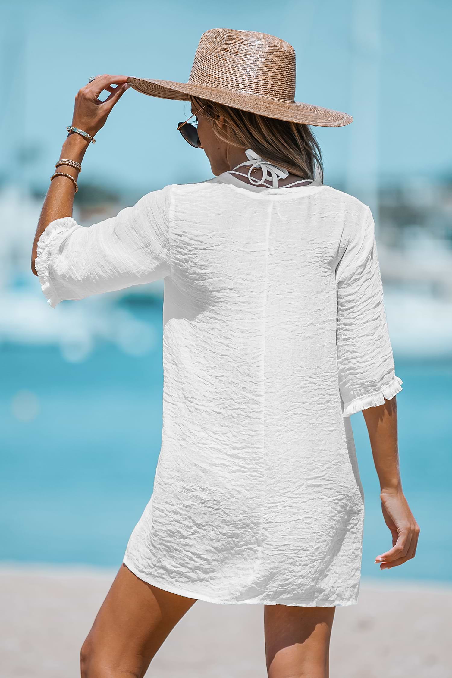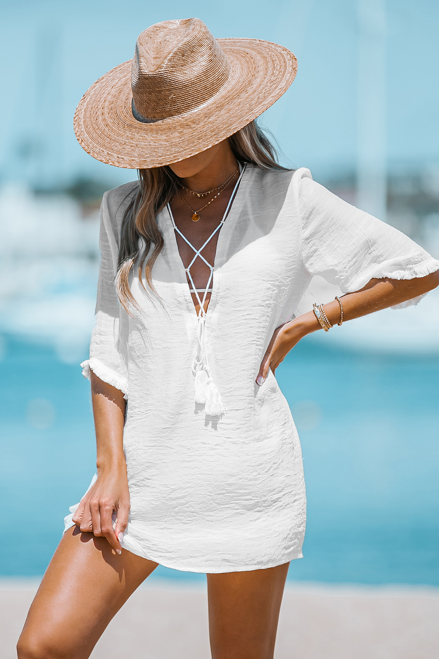HomePlunge Lace-Up Mini Cover-Up Dress