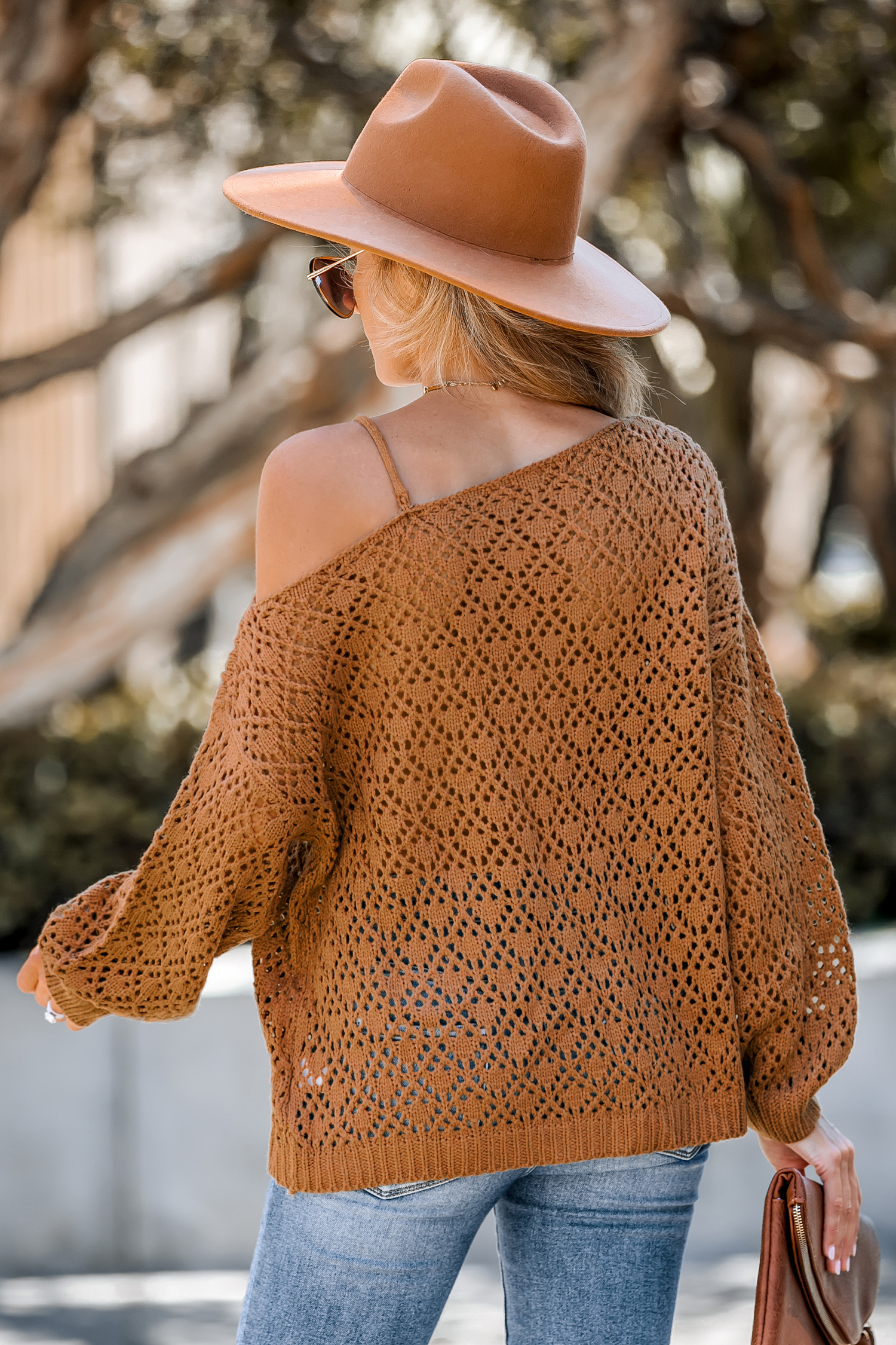 Taupe Long Sleeve Ruffled Peplum Sweater