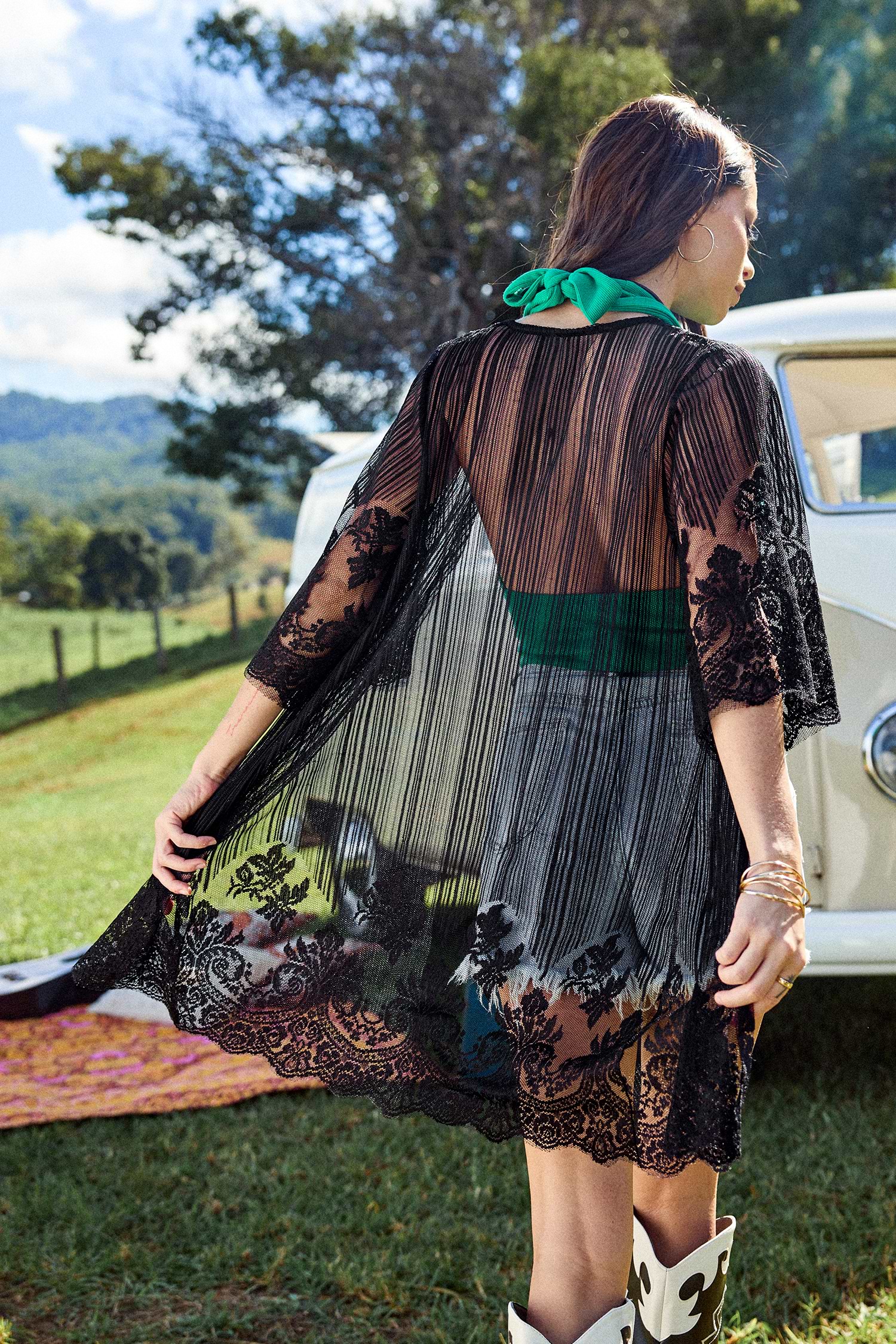 Sheer Black Embroidered Open Front Top