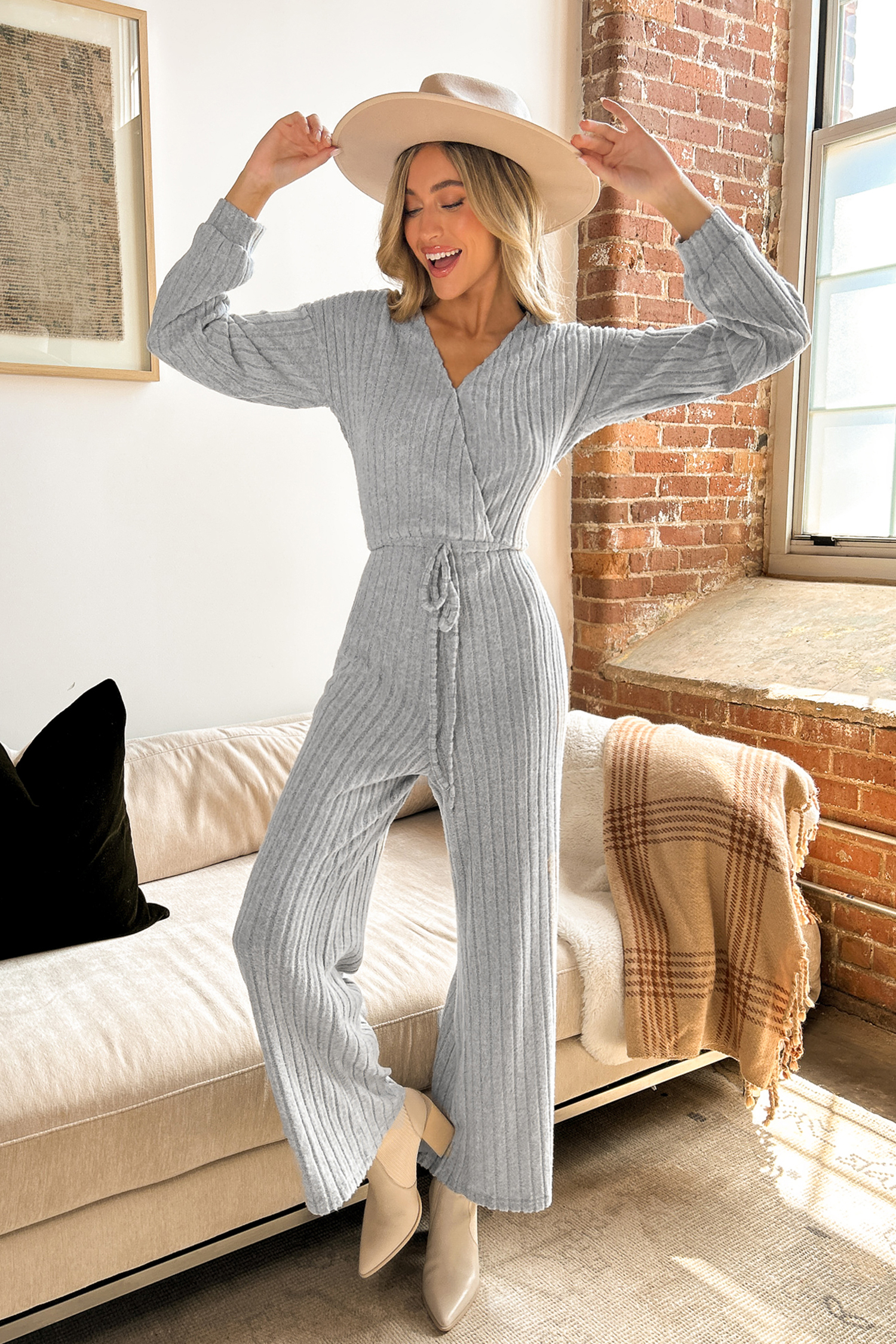 HomeSilver Mist Ribbed Drawstring Jumpsuit