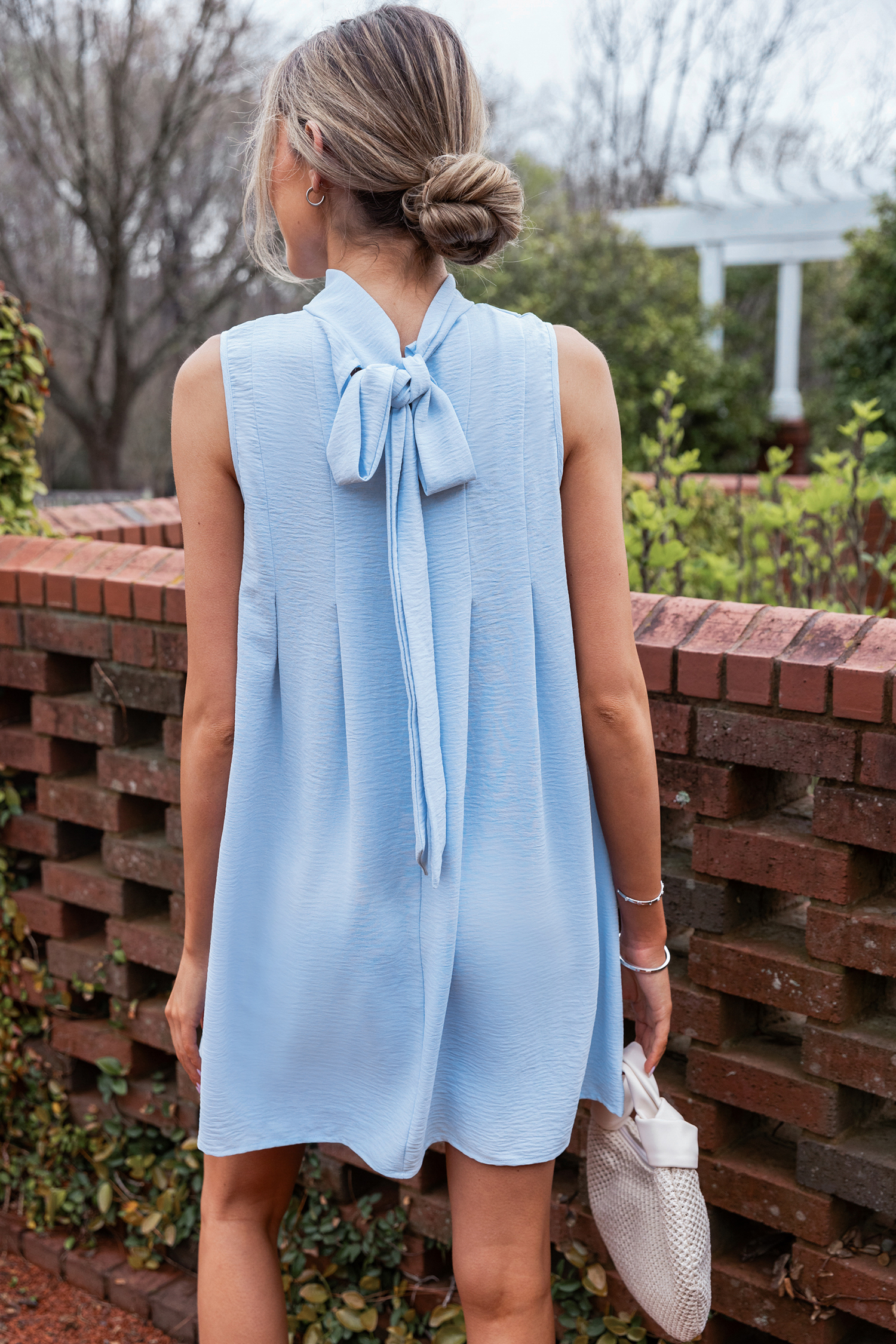 HomeSky Blue Sleeveless Turtleneck Mini Dress