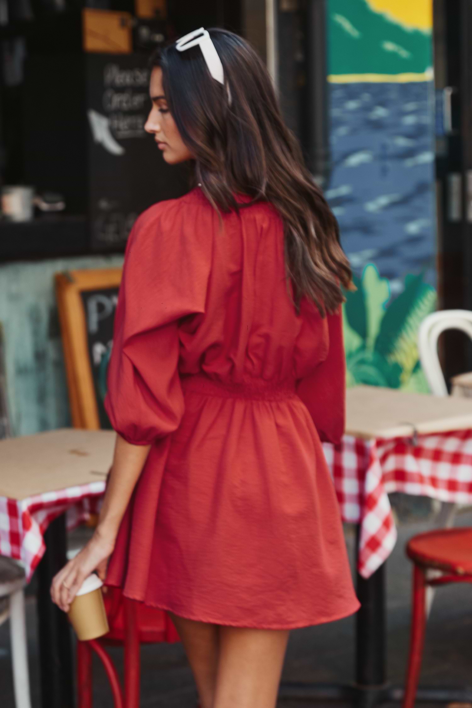 HomeSmocked V-Neck Puff Sleeve Mini Dress
